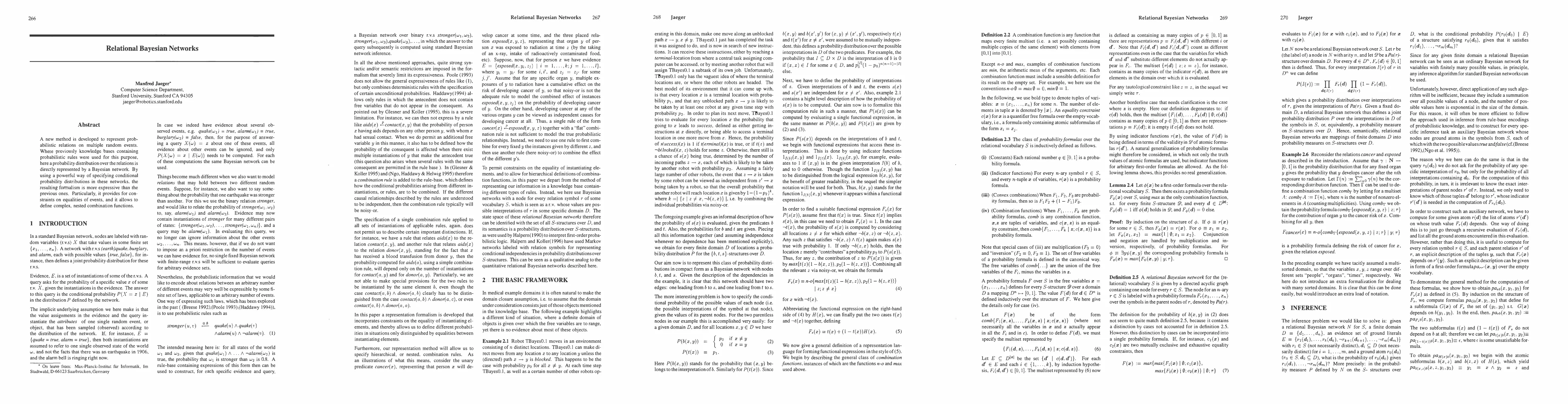 A new method is developed to represent probabilistic relations on multiple random events. Where previously knowledge bases containing probabilistic rules were used for this purpose, here a probability distribution over the relations is directly represented by a Bayesian network. By using a powerful way of specifying conditional probability distributions in these networks, the resulting formalism is more expressive than the previous ones. Particularly, it provides for constraints on equalities of events, and it allows to define complex, nested combination functions.