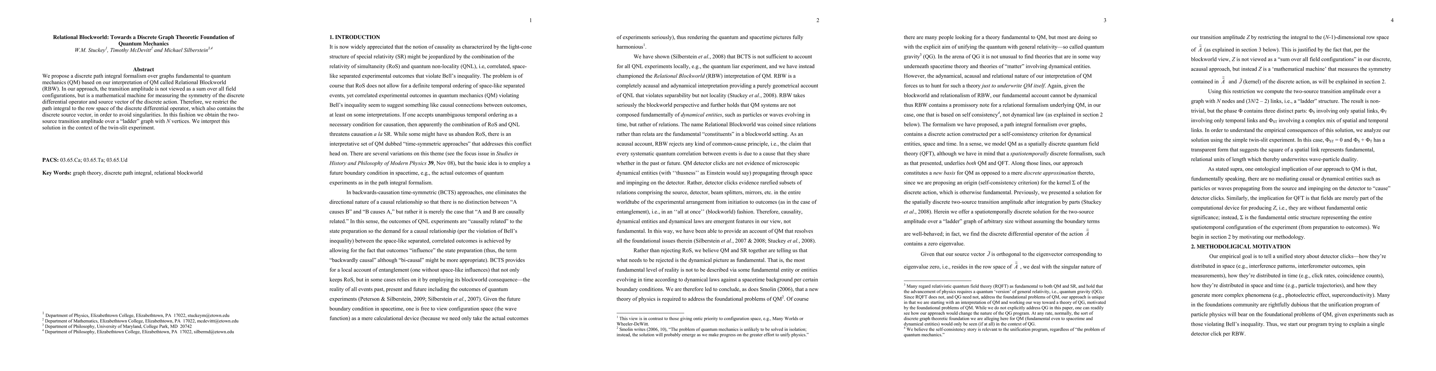 We propose a discrete path integral formalism over graphs fundamental to quantum mechanics (QM) based on our interpretation of QM called Relational Blockworld (RBW). In our approach, the transition amplitude is not viewed as a sum over all field configurations, but is a mathematical machine for measuring the symmetry of the discrete differential operator and source vector of the discrete action. Therefore, we restrict the path integral to the row space of the discrete differential operator, which also contains the discrete source vector, in order to avoid singularities. In this fashion we obtain the two-source transition amplitude over a "ladder" graph with N vertices. We interpret this solution in the context of the twin-slit experiment.