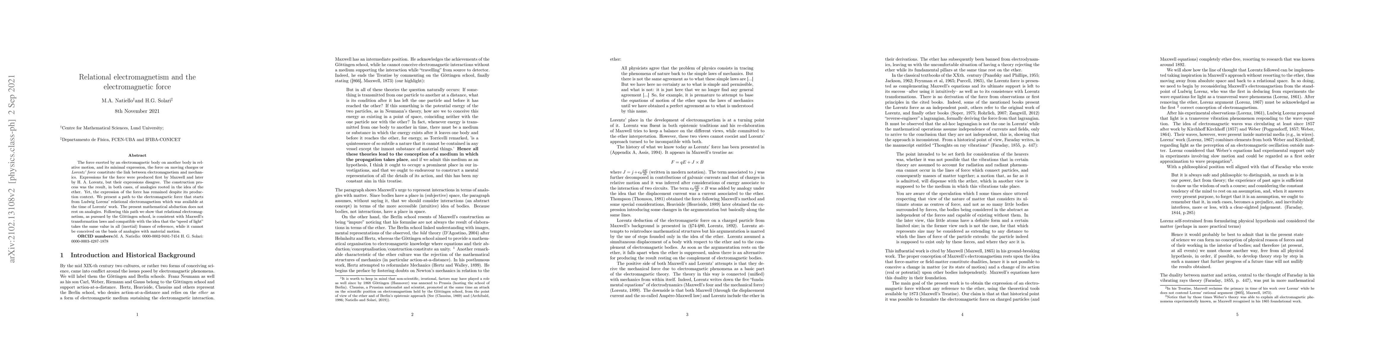 The force exerted by an electromagnetic body on another body in relative motion, and its minimal expression, the force on moving charges or \emph{Lorentz' force} constitute the link between electromagnetism and mechanics. Expressions for the force were produced first by Maxwell and later by H. A. Lorentz, but their expressions disagree. The construction process was the result, in both cases, of analogies rooted in the idea of the ether. Yet, the expression of the force has remained despite its production context. We present a path to the electromagnetic force that starts from Ludwig Lorenz' relational electromagnetism. The present mathematical abduction does not rest on analogies. Following this path we show that relational electromagnetism, as pursued by the G\"ottingen school, is consistent with Maxwell's transformation laws and compatible with the idea that the "speed of light" takes the same value in all (inertial) frames of reference, while it cannot be conceived on the basis of analogies with material motion.