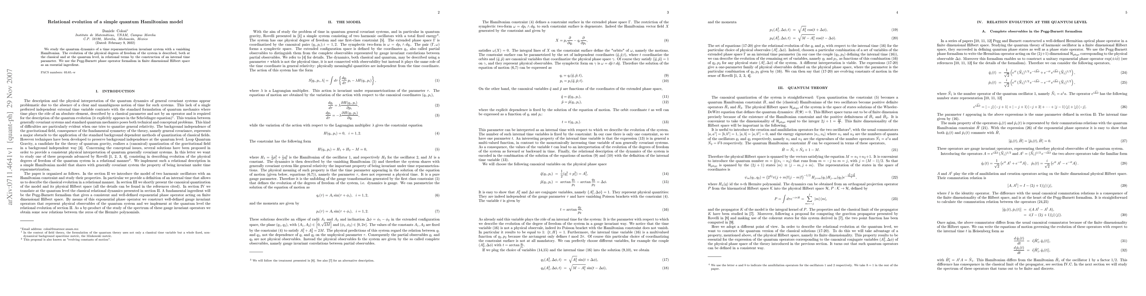 This paper investigates the quantum dynamics of a time reparametrization invariant system with a vanishing Hamiltonian, focusing on describing the evolution of physical degrees of freedom in relational terms using an internal time parameter. The Pegg-Barnett phase operator formalism is employed to analyze the dynamics in finite dimensional Hilbert space.