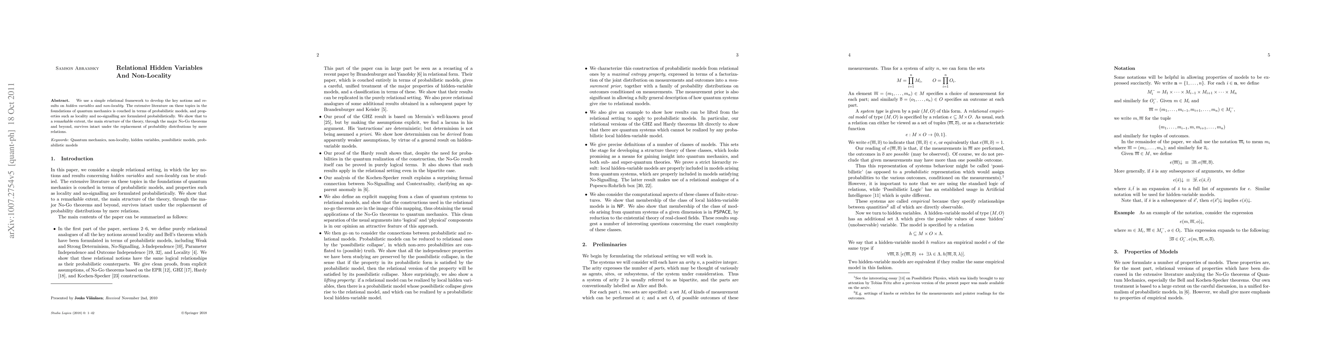 We use a simple relational framework to develop the key notions and results on hidden variables and non-locality. The extensive literature on these topics in the foundations of quantum mechanics is couched in terms of probabilistic models, and properties such as locality and no-signalling are formulated probabilistically. We show that to a remarkable extent, the main structure of the theory, through the major No-Go theorems and beyond, survives intact under the replacement of probability distributions by mere relations.