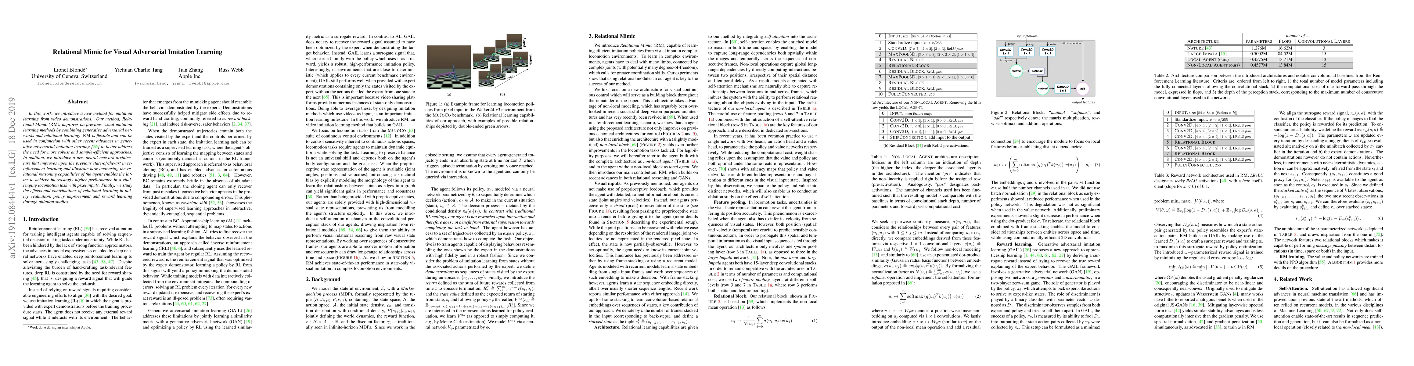 The Relational Mimic (RM) method enhances visual imitation learning by integrating generative adversarial networks and relational learning, achieving superior performance in reinforcement learning tasks. The new neural architecture demonstrates improved locomotion task results, while ablation studies highlight the benefits of relational reasoning in policy evaluation, improvement, and reward learning.