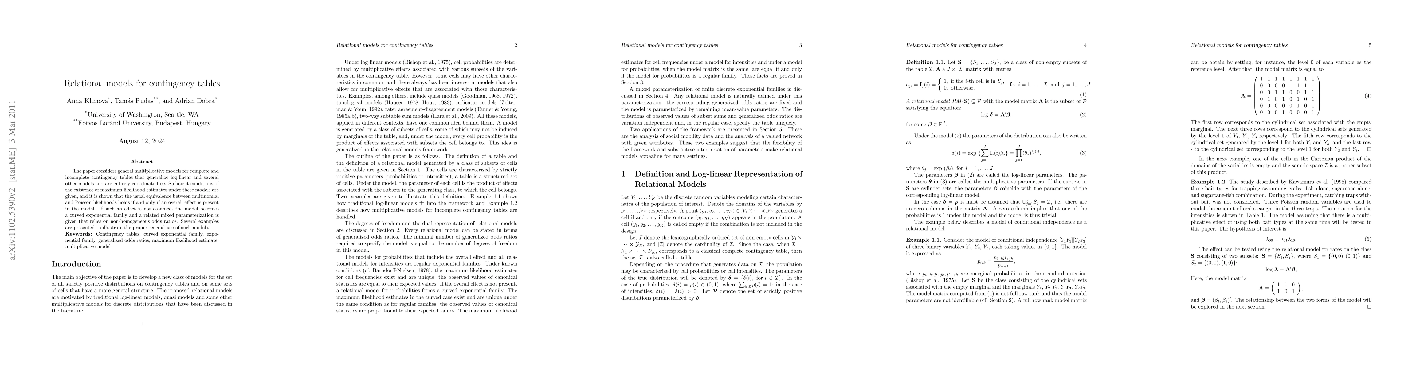 This paper proposes general multiplicative models for contingency tables, extending log-linear models and ensuring coordinate-free representation. It establishes conditions for maximum likelihood estimates and discusses the equivalence between multinomial and Poisson likelihoods, highlighting the role of an overall effect.