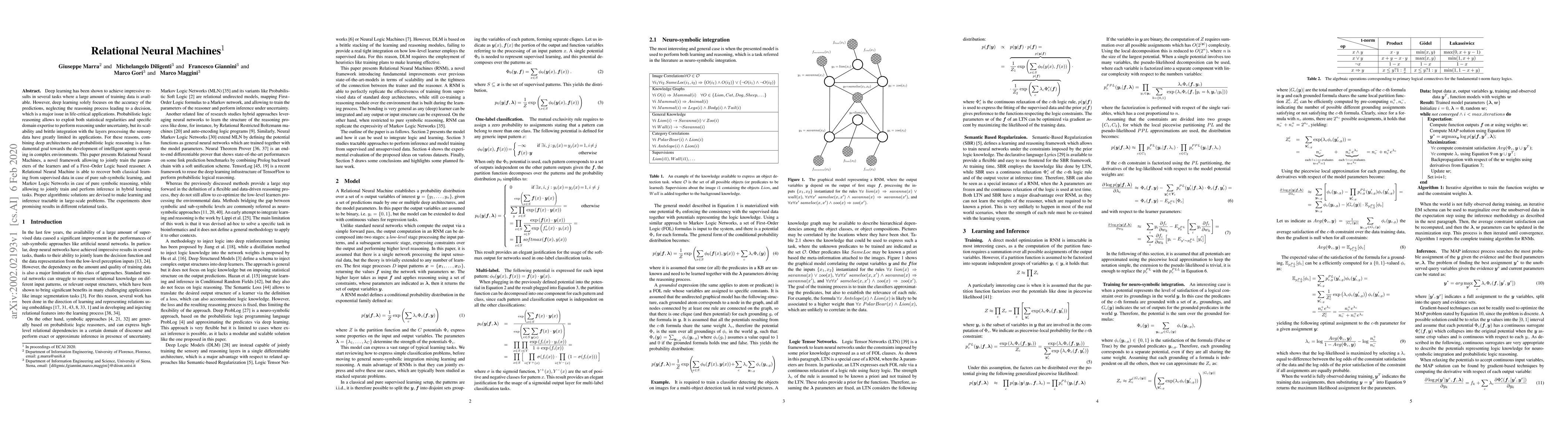 This paper introduces Relational Neural Machines, a framework that combines deep learning and probabilistic logic reasoning to create intelligent agents capable of both statistical learning and reasoning under uncertainty. The proposed model is shown to effectively handle hybrid learning tasks and demonstrates promising results in various relational tasks.