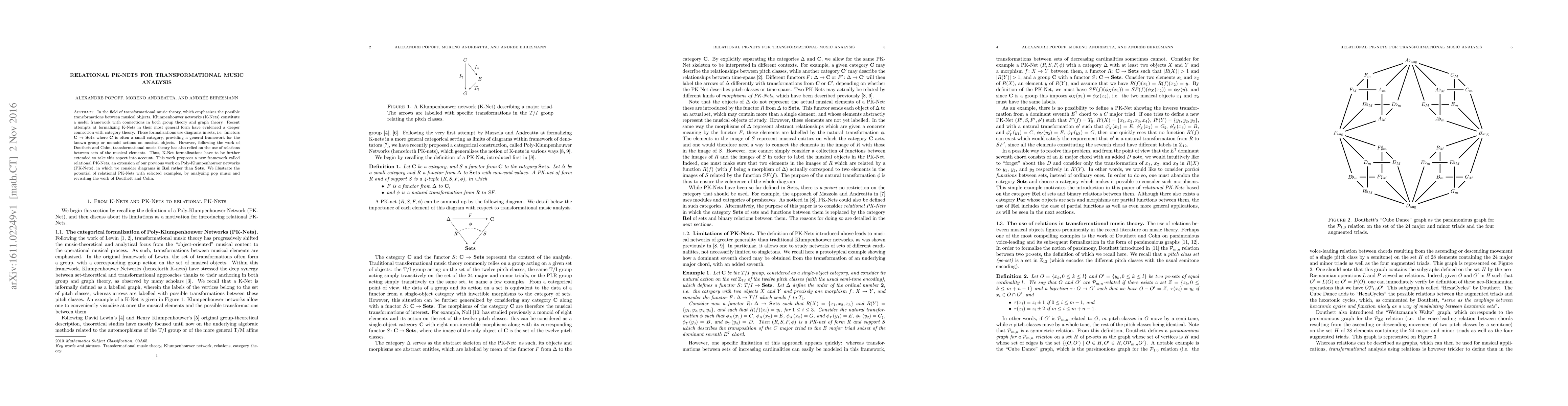 Researchers developed relational PK-Nets, a new framework for transformational music analysis that considers relations between sets of musical elements, extending previous work on Poly-Klumpenhouwer networks.