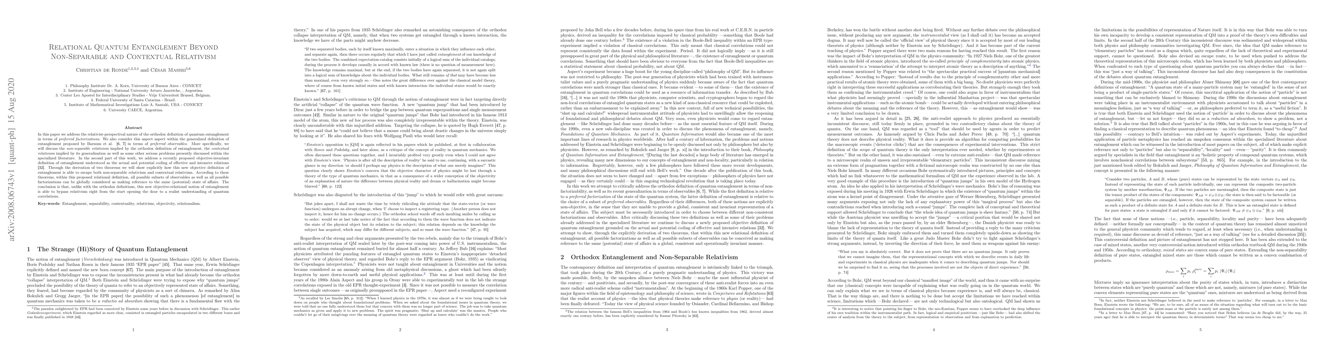 The paper discusses a relational approach to quantum entanglement, focusing on the notions of non-separable relativism and contextual relativism, and proposes a new objective-relational definition of entanglement based on effective and intensive relations.