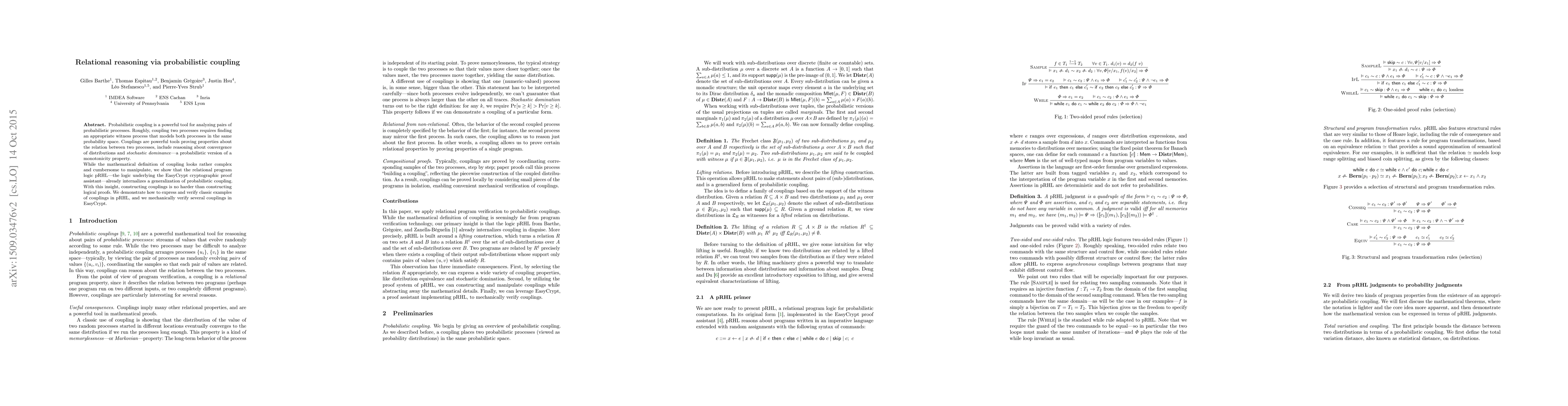 This paper explores probabilistic coupling as a method for relational reasoning between probabilistic processes, demonstrating its internalization in pRHL, the logic underlying EasyCrypt. It shows that constructing couplings can be as straightforward as constructing logical proofs, verified through examples and mechanical checks in EasyCrypt.
