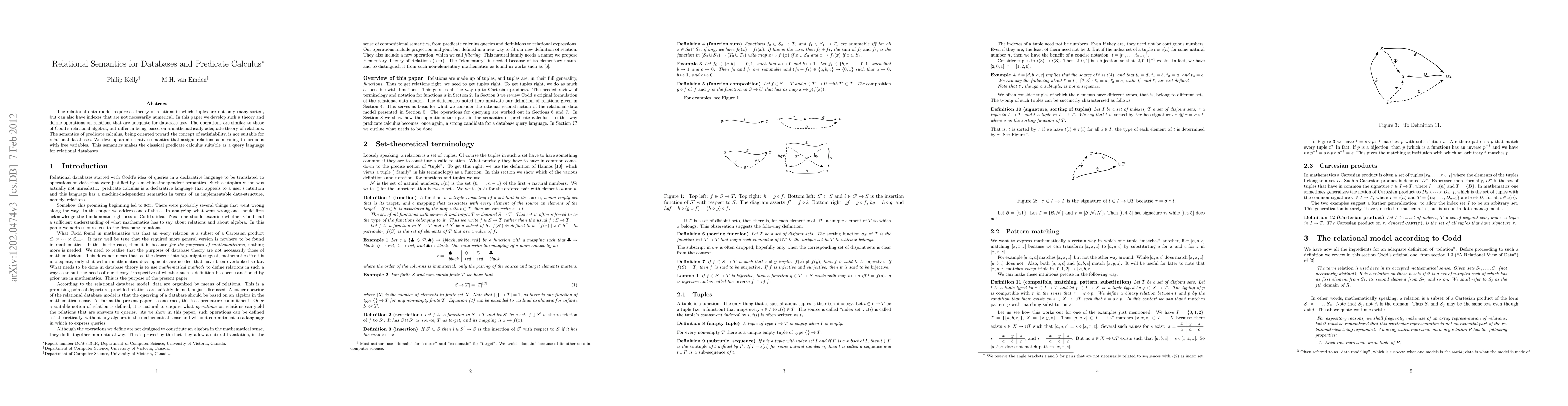 This paper develops a mathematically sound theory of relations for databases, extending relational algebra with non-numerical indexes. It proposes an alternative semantics for predicate calculus, making it suitable for use as a query language for relational databases by assigning relations as meanings to formulas.