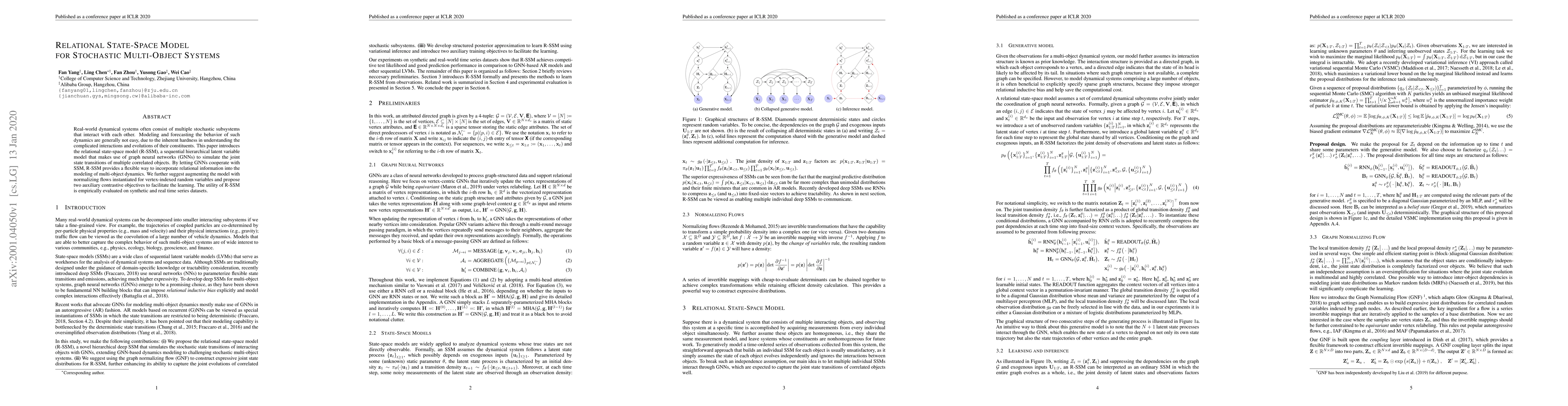 This paper introduces the Relational State-Space Model (R-SSM), a method using graph neural networks (GNNs) to model and forecast the behavior of complex, interacting stochastic systems. R-SSM combines sequential hierarchical latent variable models with GNNs for relational information, and improves learning through normalizing flows and contrastive objectives. Its effectiveness is demonstrated on synthetic and real-world time-series datasets.