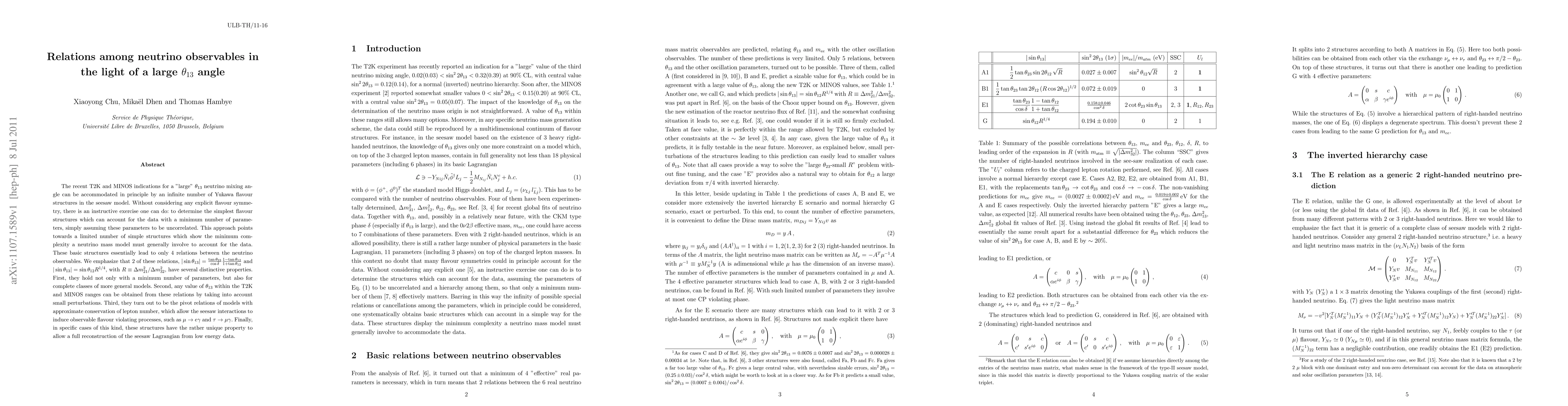 The recent T2K and MINOS indications for a "large" theta_13 neutrino mixing angle can be accommodated in principle by an infinite number of Yukawa flavour structures in the seesaw model. Without considering any explicit flavour symmetry, there is an instructive exercise one can do: to determine the simplest flavour structures which can account for the data with a minimum number of parameters, simply assuming these parameters to be uncorrelated. This approach points towards a limited number of simple structures which show the minimum complexity a neutrino mass model must generally involve to account for the data. These basic structures essentially lead to only 4 relations between the neutrino observables. We emphasize that 2 of these relations, |sin theta_13|=(tan theta_23/cos delta)*(1-tan theta_12)/(1+tan theta_12) and |sin theta_13| = sin theta_12 R^1/4, with R= Delta m^2_21/Delta m^2_32, have several distinctive properties. First, they hold not only with a minimum number of parameters, but also for complete classes of more general models. Second, any value of theta_13 within the T2K and MINOS ranges can be obtained from these relations by taking into account small perturbations. Third, they turn out to be the pivot relations of models with approximate conservation of lepton number, which allow the seesaw interactions to induce observable flavour violating processes, such as mu -> e gamma and tau -> mu gamma. Finally, in specific cases of this kind, these structures have the rather unique property to allow a full reconstruction of the seesaw Lagrangian from low energy data.