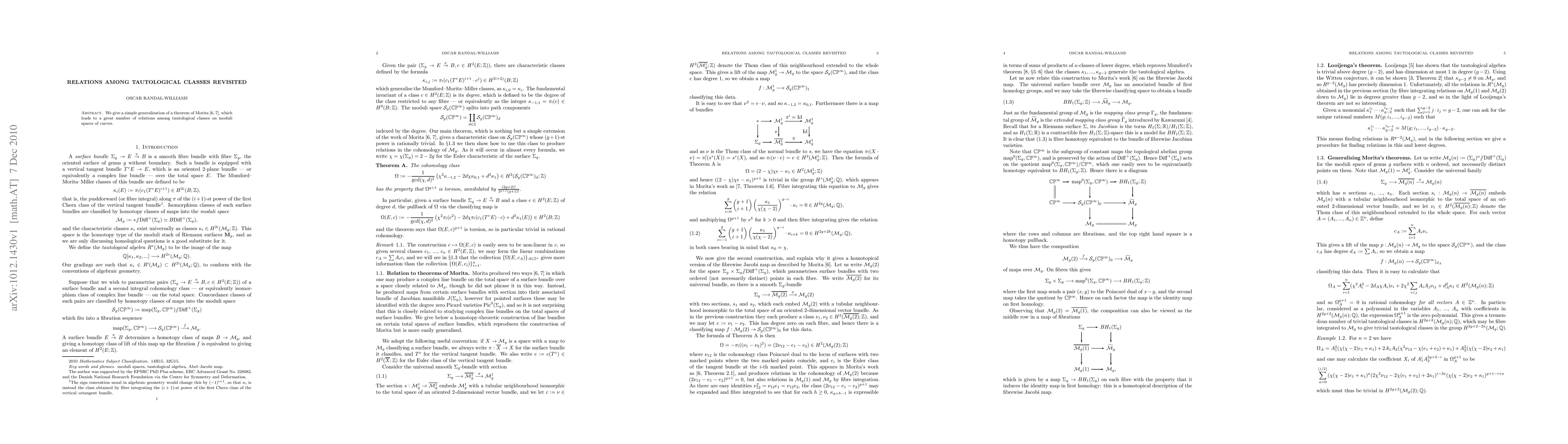 This paper generalizes Morita's theorem to establish numerous relationships among tautological classes on moduli spaces of curves, providing a simplified framework for understanding these complex interactions.