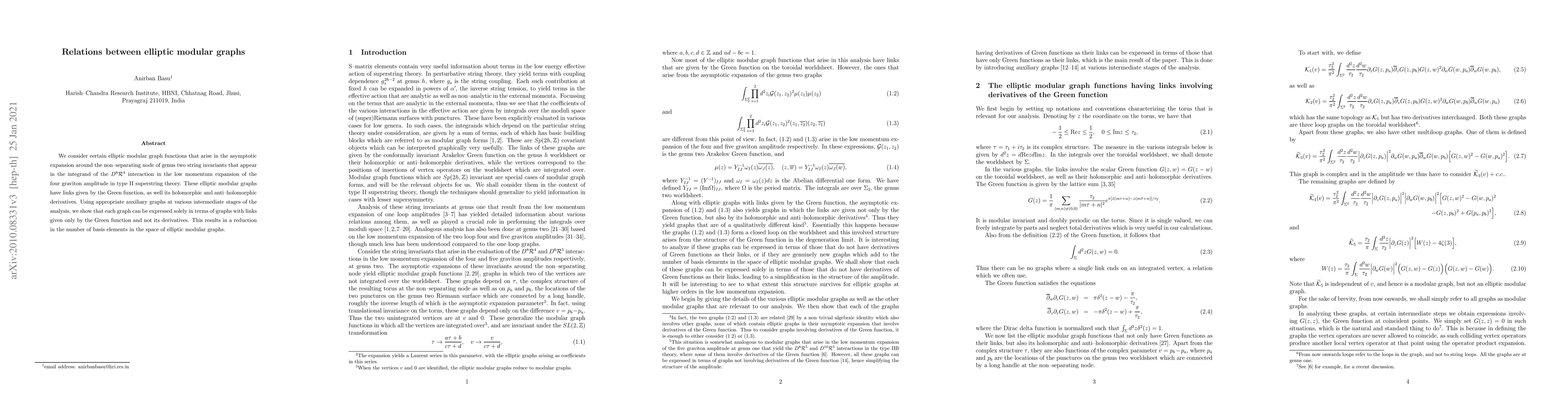 The paper investigates elliptic modular graph functions in the context of type II superstring theory, demonstrating that these graphs can be expressed in terms of the Green function and its derivatives. This simplification reduces the complexity and basis elements in the space of these graphs.