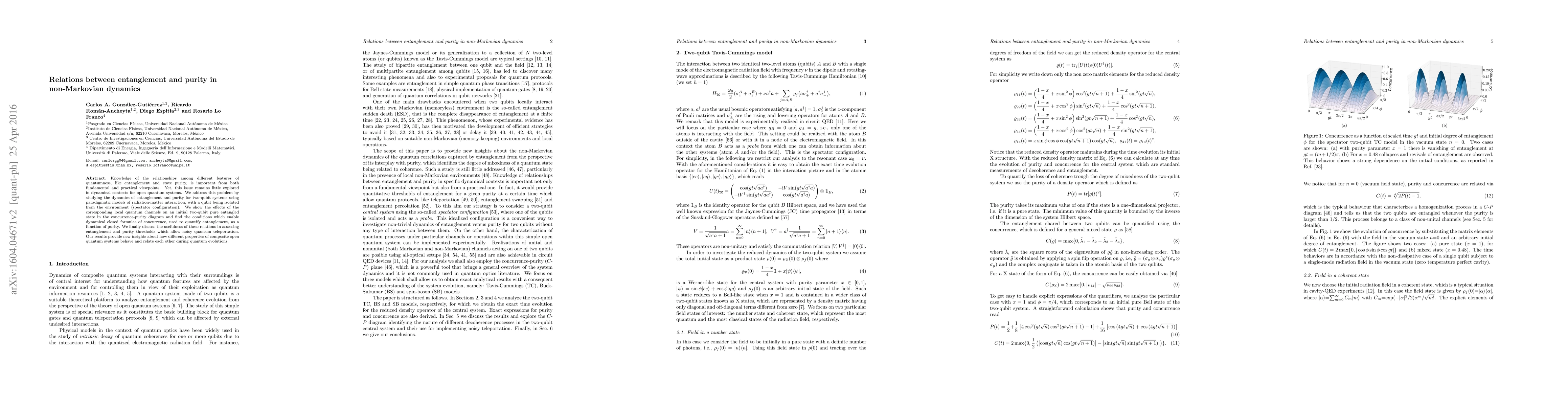 This paper investigates the interplay between entanglement and purity in non-Markovian dynamics of two-qubit systems, revealing how local quantum channels affect an initial pure entangled state. It provides closed-form expressions for entanglement as a function of purity, offering insights into their relationship and implications for quantum teleportation thresholds.