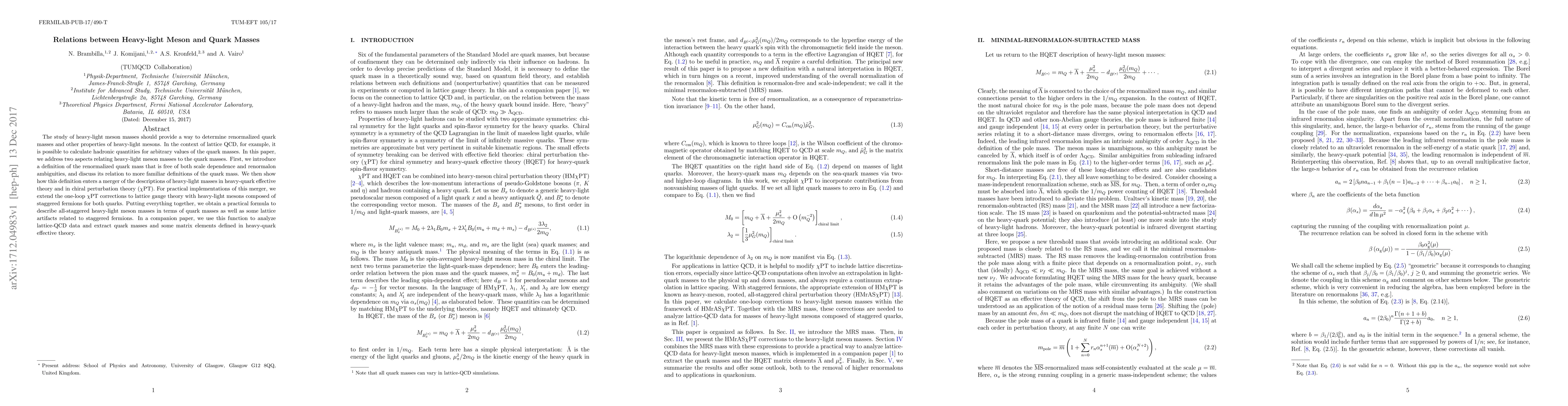 This paper develops a new definition of renormalized quark mass that eliminates scale dependence and renormalon ambiguities, and integrates it into a framework merging heavy-quark effective theory and chiral perturbation theory. It provides a practical formula for calculating heavy-light meson masses in lattice QCD using staggered fermions, facilitating the extraction of quark masses from lattice data.