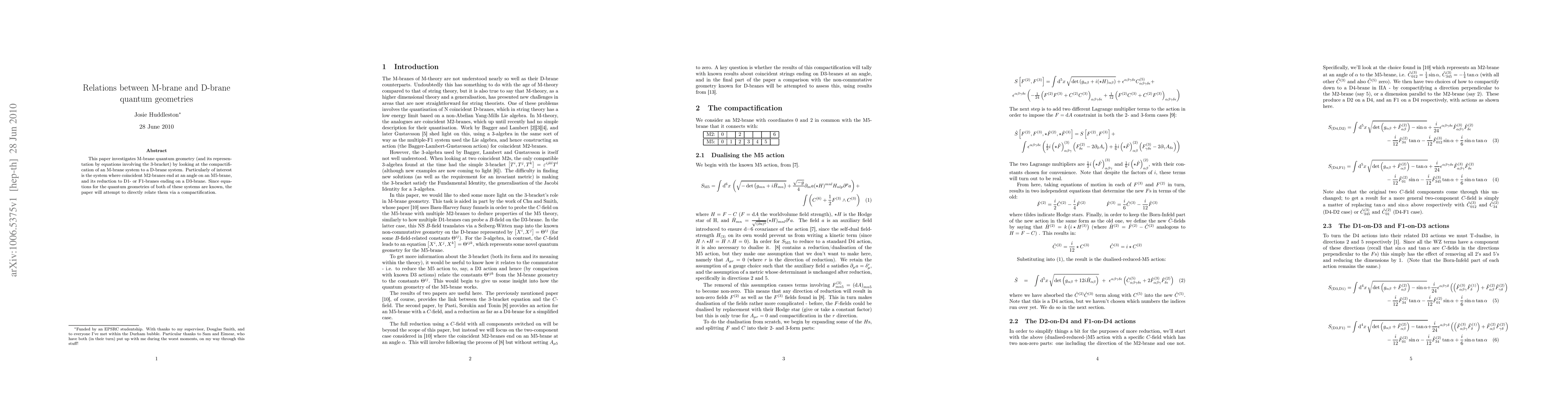 This paper investigates M-brane quantum geometry (and its representation by equations involving the 3-bracket) by looking at the compactification of an M-brane system to a D-brane system. Particularly of interest is the system where coincident M2-branes end at an angle on an M5-brane, and its reduction to D1- or F1-branes ending on a D3-brane. Since equations for the quantum geometries of both of these systems are known, the paper will attempt to directly relate them via a compactification.