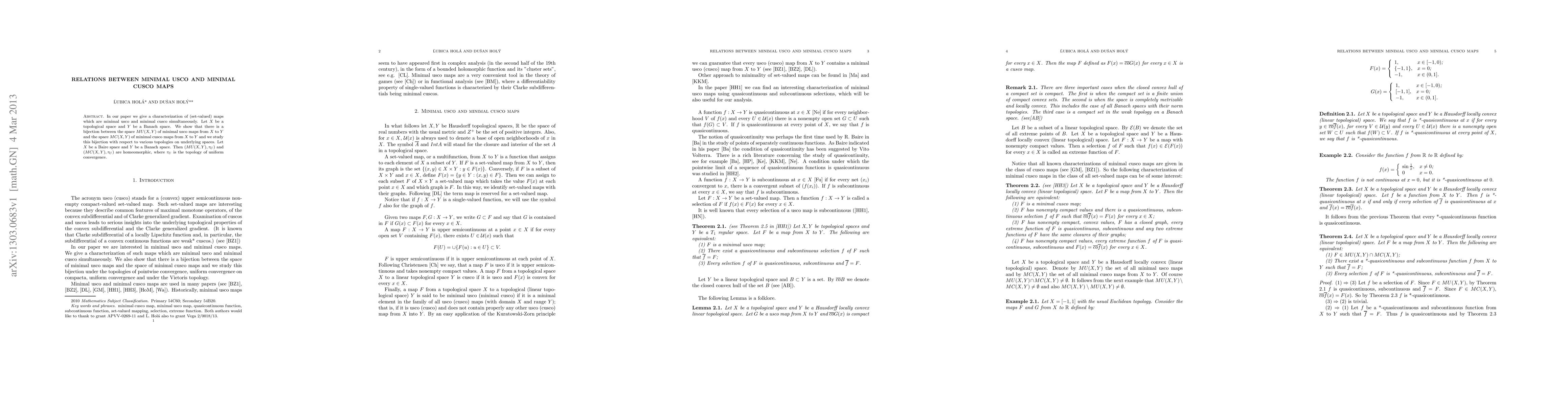 Summary: This paper investigates the connections and properties between minimal upper semicontinuous (usco) and lower semicontinuous (cusco) maps, providing insights into their comparative behaviors and interactions.
