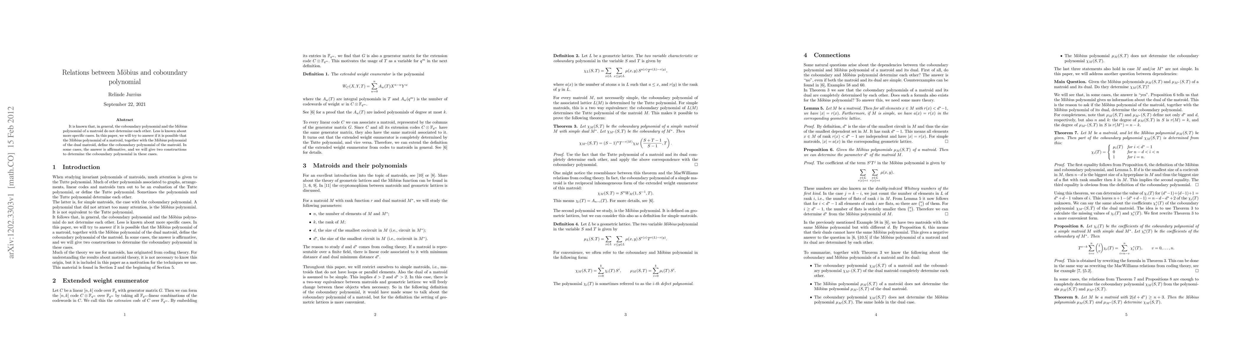 It is known that, in general, the coboundary polynomial and the M\"obius polynomial of a matroid do not determine each other. Less is known about more specific cases. In this paper, we will try to answer if it is possible that the M\"obius polynomial of a matroid, together with the M\"obius polynomial of the dual matroid, define the coboundary polynomial of the matroid. In some cases, the answer is affirmative, and we will give two constructions to determine the coboundary polynomial in these cases.