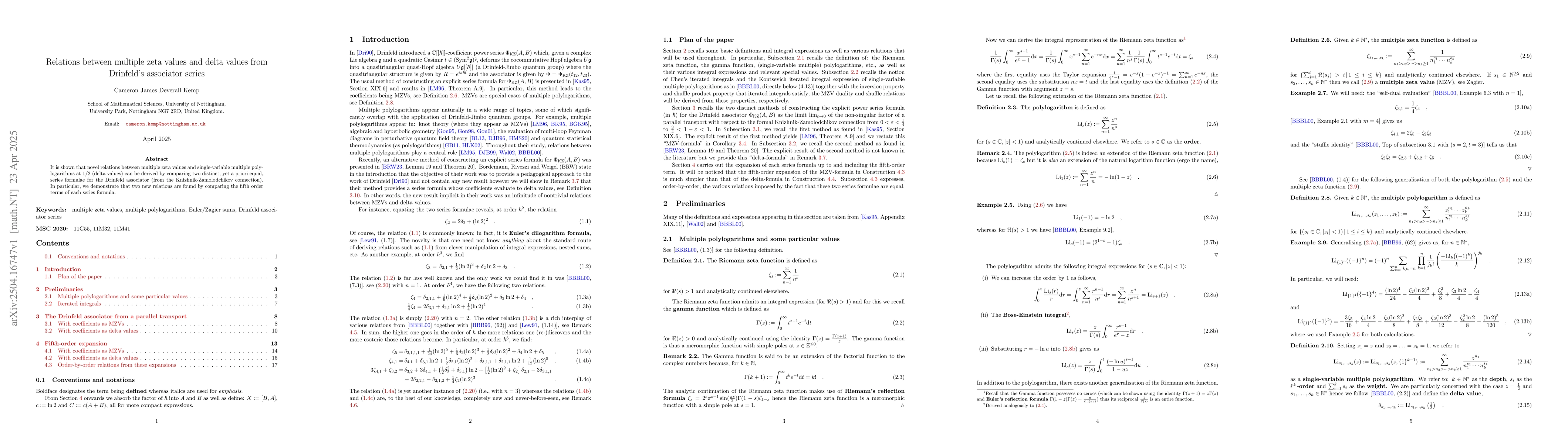 The paper presents a detailed analysis of the Drinfeld associator series, deriving explicit expressions and relations between MZVs and delta values using series comparisons.