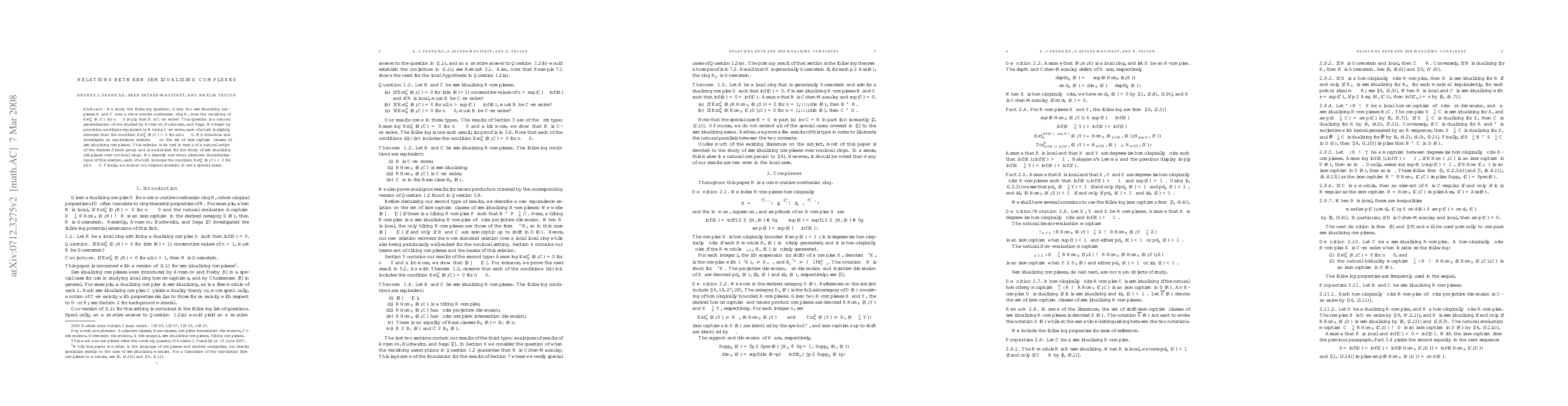 This paper investigates the relationship between vanishing Ext groups and C-reflexivity of semidualizing complexes B and C over a commutative Noetherian ring R. It introduces an equivalence relation on semidualizing complexes, suitable for nonlocal rings, and answers the posed question in specific scenarios.