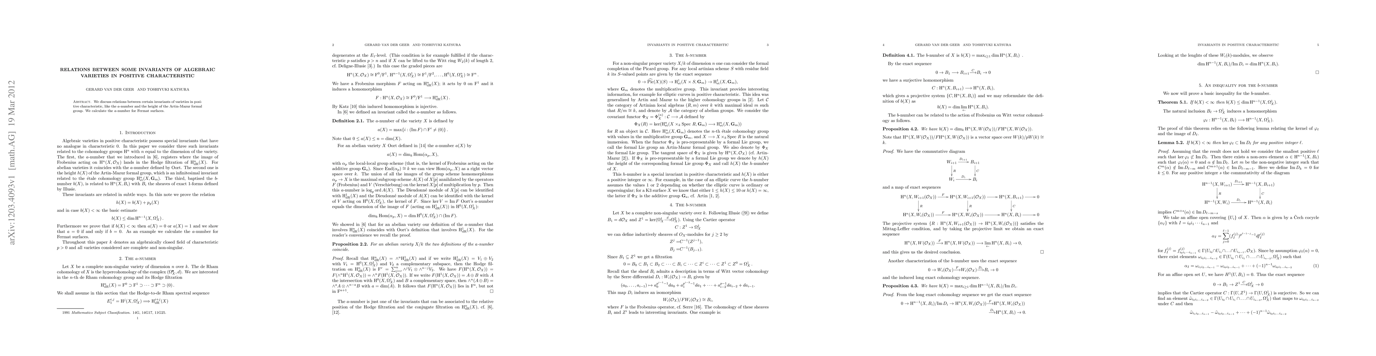 We discuss relations between certain invariants of varieties in positive characteristic, like the a-number and the height of the Artin-Mazur formal group. We calculate the a-number for Fermat surfaces