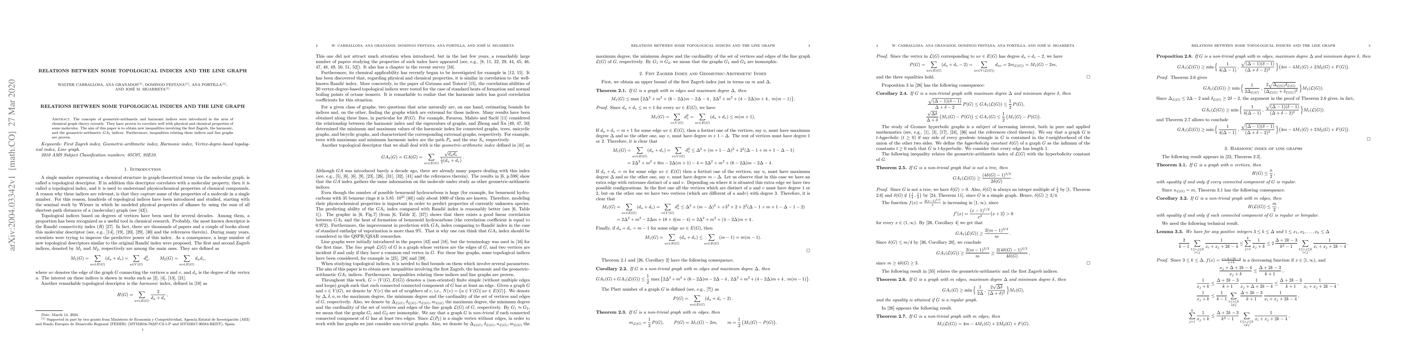 This paper investigates relationships between topological indices and line graphs, proving new inequalities that correlate with physical and chemical properties of molecules.