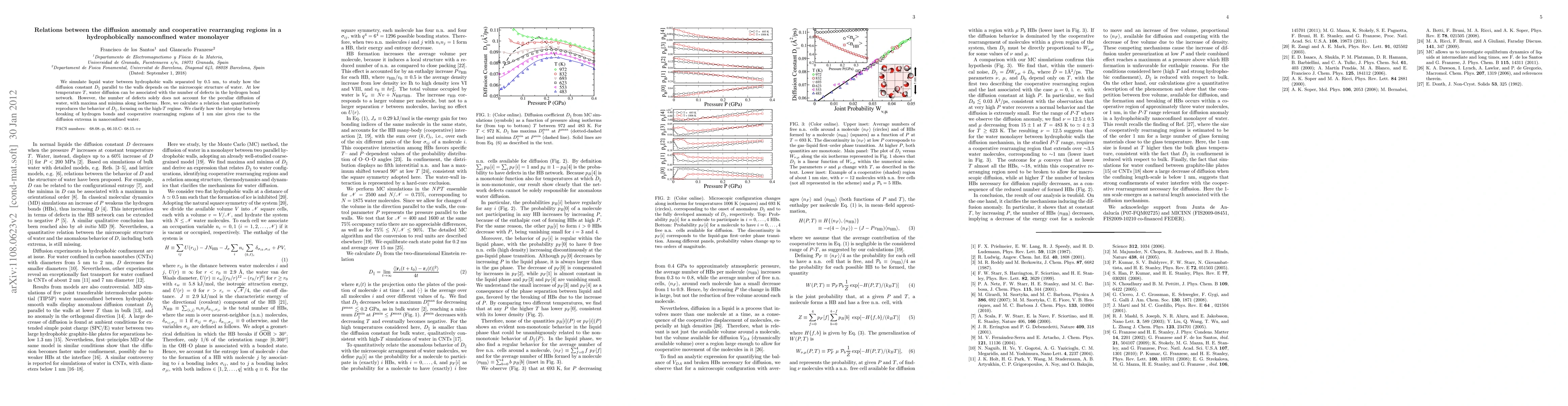This paper investigates the diffusion anomaly in nanoconfined water between hydrophobic walls, finding that it correlates with both hydrogen bond defects and cooperative rearranging regions. The study reveals a quantitative relation explaining the diffusion behavior at high temperatures, highlighting the role of hydrogen bond dynamics and structural rearrangements in diffusion extrema.