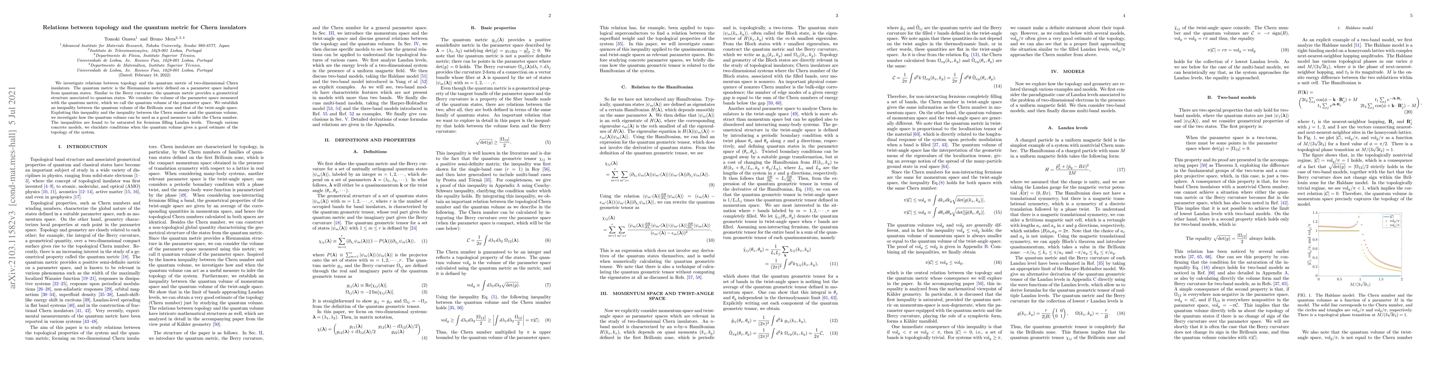 Researchers investigated a connection between a topological property called Chern insulators and their quantum metric, finding that the quantum volume can estimate the Chern number for certain systems.