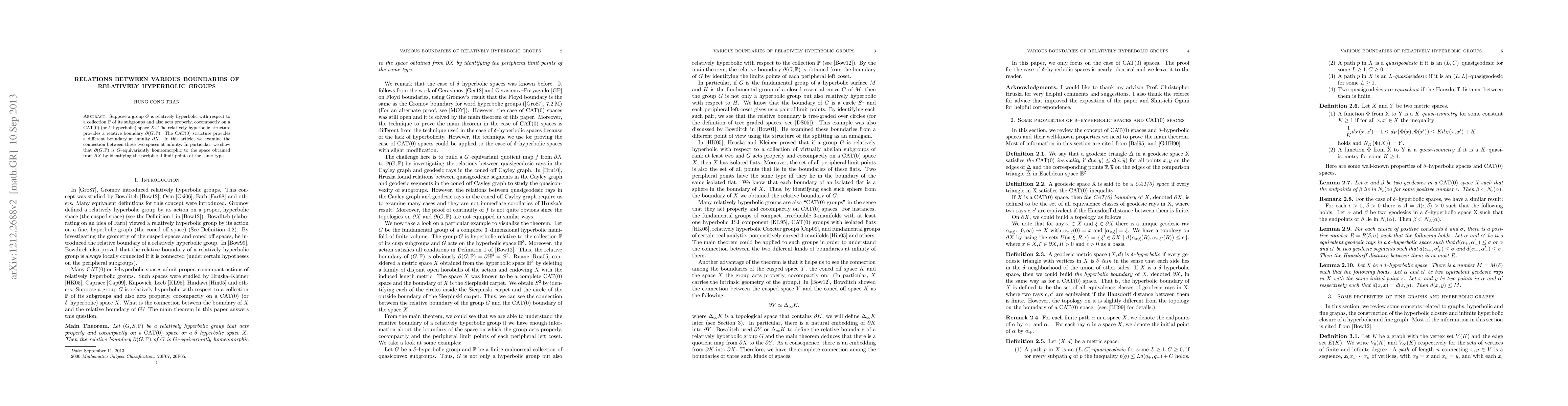 This paper explores the relationship between the relative boundary $\partial(G,\PP)$ of a relatively hyperbolic group $G$ and the boundary at infinity $\partial X$ of a $\CAT(0)$ space $X$ on which $G$ acts. The authors demonstrate that $\partial(G,\PP)$ is $G$-equivariantly homeomorphic to a modified version of $\partial X$ where peripheral limit points of the same type are identified.
