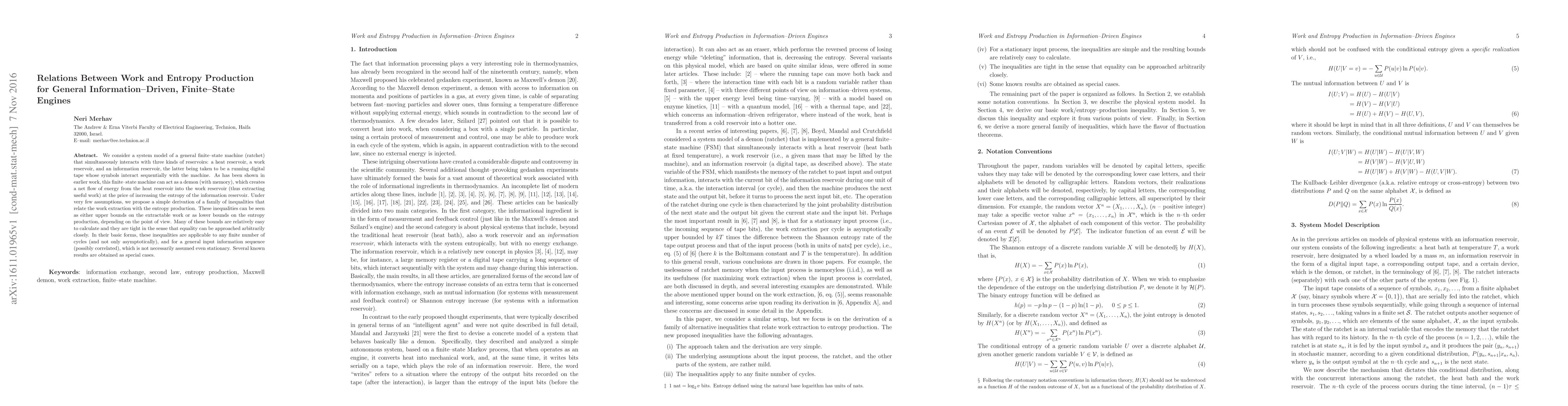 We consider a system model of a general finite-state machine (ratchet) that simultaneously interacts with three kinds of reservoirs: a heat reservoir, a work reservoir, and an information reservoir, the latter being taken to be a running digital tape whose symbols interact sequentially with the machine. As has been shown in earlier work, this finite-state machine can act as a demon (with memory), which creates a net flow of energy from the heat reservoir into the work reservoir (thus extracting useful work) at the price of increasing the entropy of the information reservoir. Under very few assumptions, we propose a simple derivation of a family of inequalities that relate the work extraction with the entropy production. These inequalities can be seen as either upper bounds on the extractable work or as lower bounds on the entropy production, depending on the point of view. Many of these bounds are relatively easy to calculate and they are tight in the sense that equality can be approached arbitrarily closely. In their basic forms, these inequalities are applicable to any finite number of cycles (and not only asymptotically), and for a general input information sequence (possibly correlated), which is not necessarily assumed even stationary. Several known results are obtained as special cases.