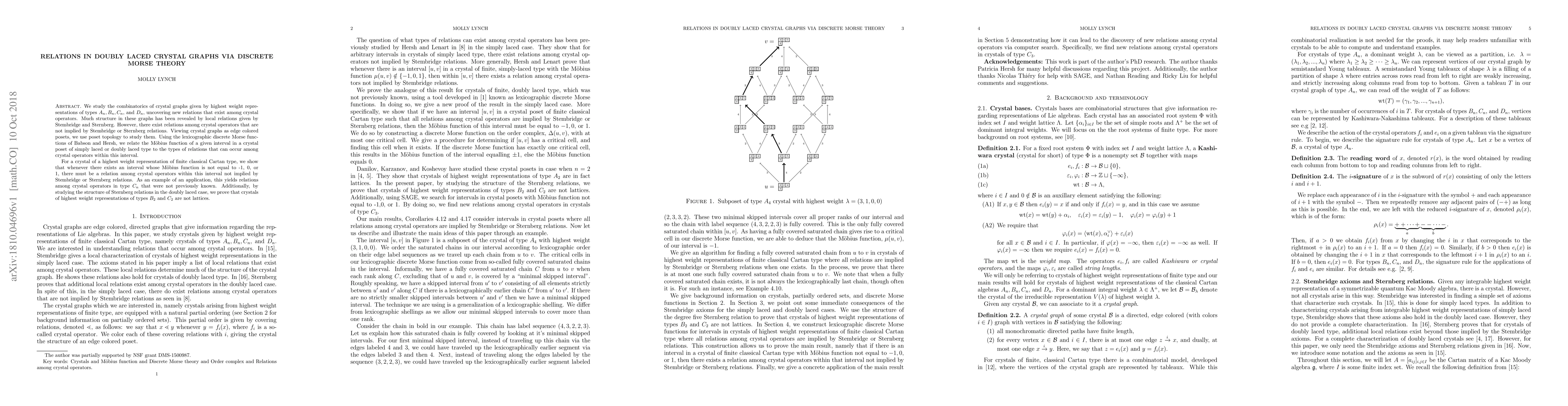 We study the combinatorics of crystal graphs given by highest weight representations of types $A_{n}, B_{n}, C_{n}$, and $D_{n}$, uncovering new relations that exist among crystal operators. Much structure in these graphs has been revealed by local relations given by Stembridge and Sternberg. However, there exist relations among crystal operators that are not implied by Stembridge or Sternberg relations. Viewing crystal graphs as edge colored posets, we use poset topology to study them. Using the lexicographic discrete Morse functions of Babson and Hersh, we relate the M\"obius function of a given interval in a crystal poset of simply laced or doubly laced type to the types of relations that can occur among crystal operators within this interval. For a crystal of a highest weight representation of finite classical Cartan type, we show that whenever there exists an interval whose M\"obius function is not equal to -1, 0, or 1, there must be a relation among crystal operators within this interval not implied by Stembridge or Sternberg relations. As an example of an application, this yields relations among crystal operators in type $C_{n}$ that were not previously known. Additionally, by studying the structure of Sternberg relations in the doubly laced case, we prove that crystals of highest weight representations of types $B_{2}$ and $C_{2}$ are not lattices.