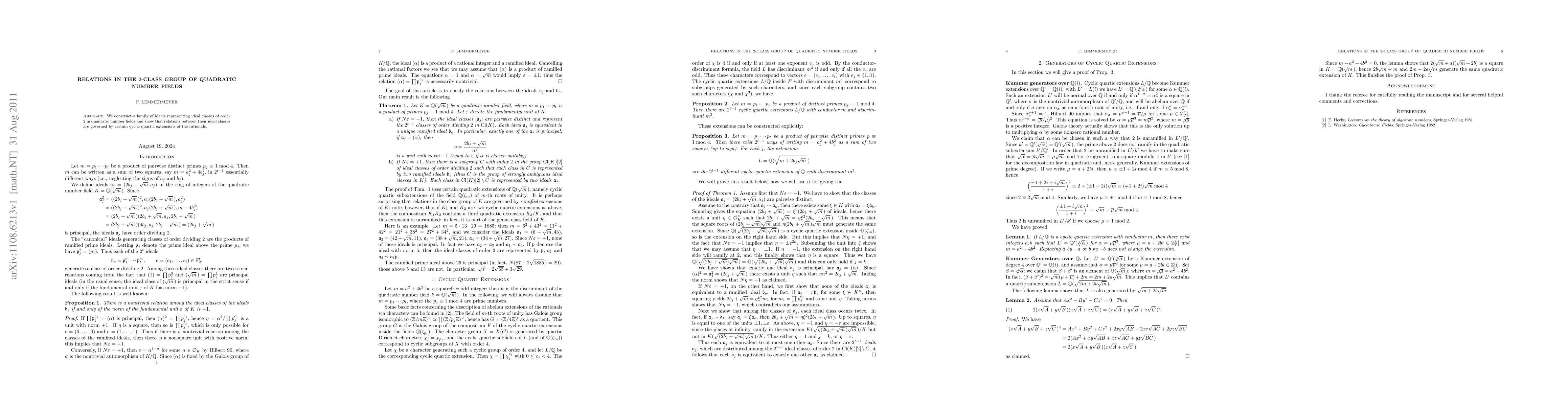 This research constructs a family of ideals illustrating order 2 ideal classes in quadratic number fields, demonstrating that their relations are controlled by cyclic quartic extensions of rationals.