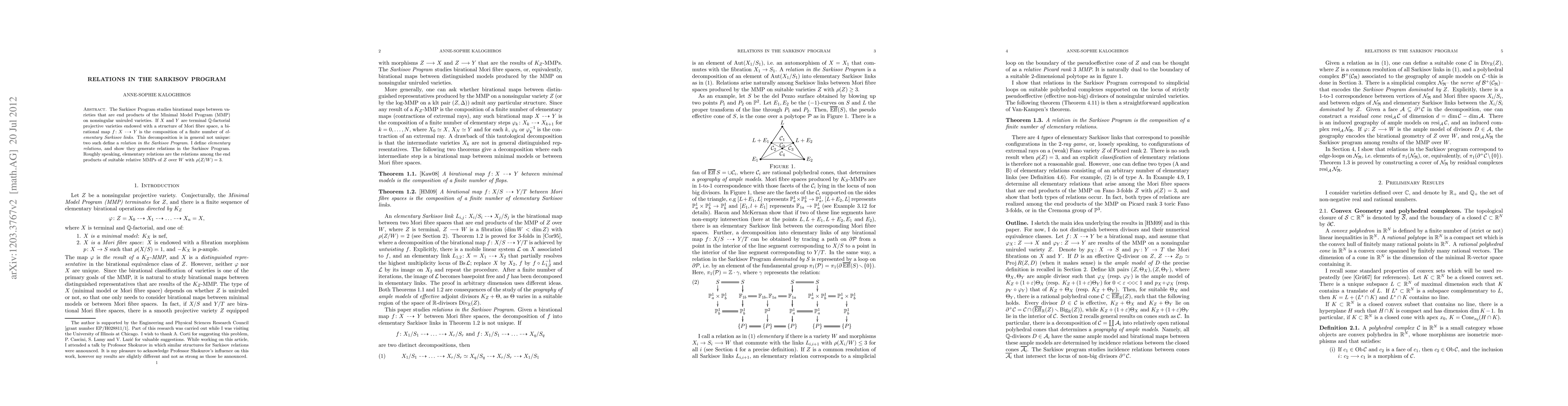 This paper explores the decomposition of birational maps between terminal Q-factorial projective varieties into Sarkisov links, demonstrating that these relations are generated by elementary relations arising from the MMP of specific varieties with relative Picard rank 3.
