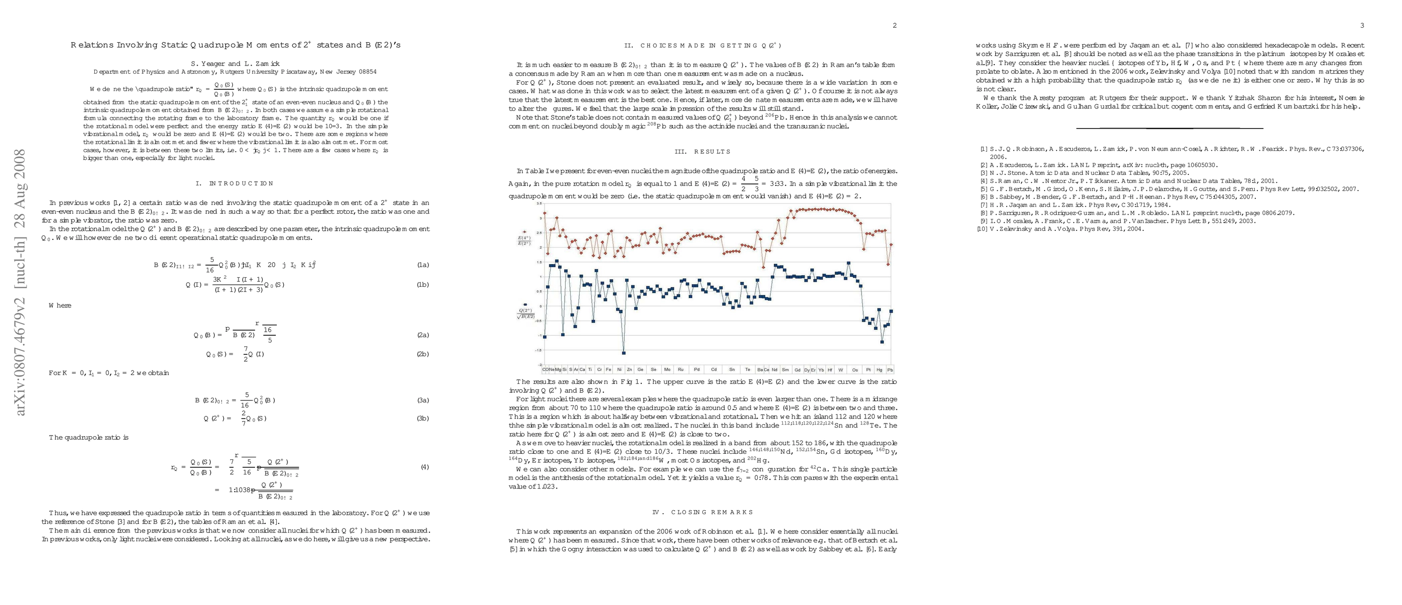 We define the ``quadrupole ratio'' $r_Q = \dfrac{Q_0(S)}{Q_0(B)}$ where $Q_0(S)$ is the intrinsic quadrupole moment obtained from the static quadrupole moment of the $2_1^+$ state of an even-even nucleus and $Q_0(B)$ the intrinsic quadrupole moment obtained from $B(E2)_{0 \to 2}$. In both cases we assume a simple rotational formula connecting the rotating frame to the laboratory frame. The quantity $r_Q$ would be one if the rotational model were perfect and the energy ratio $E(4)/E(2)$ would be 10/3. In the simple vibrational model, $r_Q$ would be zero and $E(4)/E(2)$ would be two. There are some regions where the rotational limit is almost met and fewer where the vibrational limit is also almost met. For most cases, however, it is between these two limits, i.e. $0 < r_Q < 1$. There are a few cases where $r_Q$ is bigger than one, especially for light nuclei.