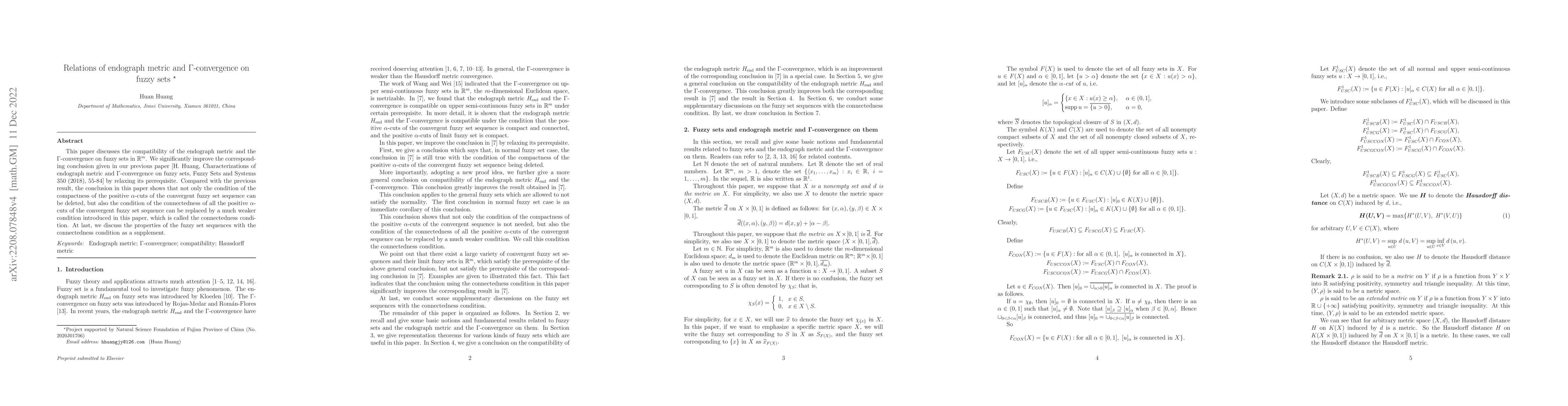 This paper demonstrates the compatibility of the endograph metric and $\Gamma$-convergence within a broad category of fuzzy sets in $\mathbb{R}^m$. It establishes a connection between these two concepts for analyzing fuzzy set transformations.