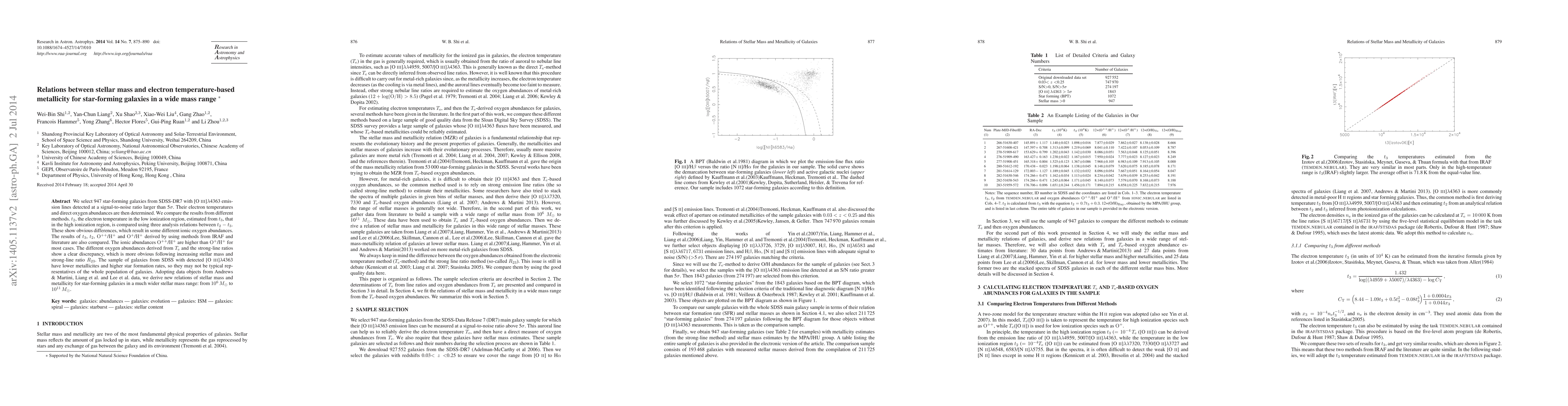 Researchers studied 947 star-forming galaxies to understand how their electron temperatures affect metallicity, finding a significant discrepancy between different methods and increasing stellar mass.