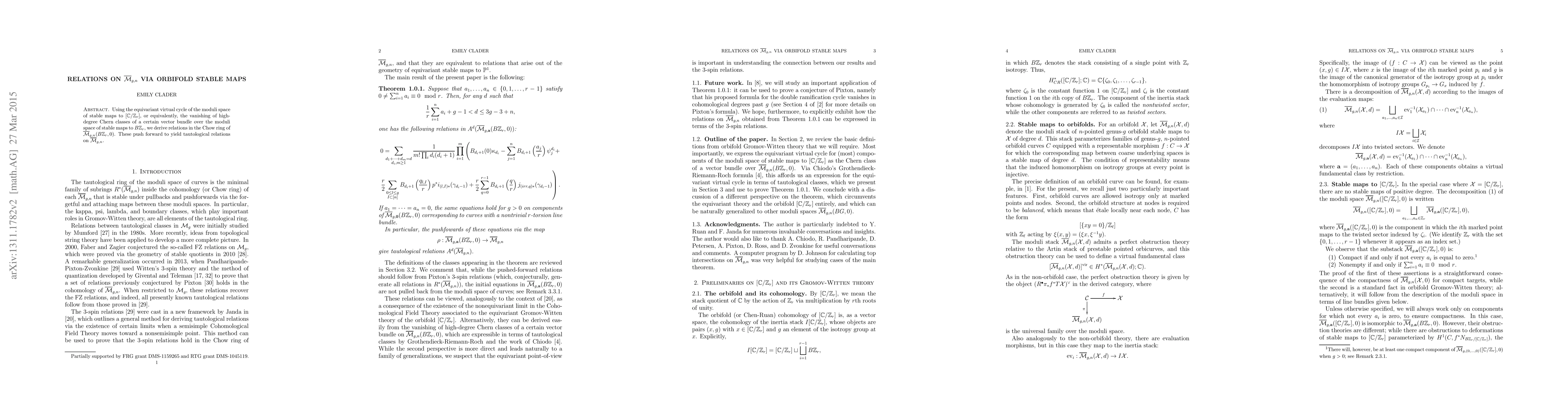 Summary: This paper uses the equivariant virtual cycle of stable maps to derive relations in the Chow ring of the moduli space of stable maps to orbifolds, ultimately yielding tautological relations on the moduli space of stable curves.