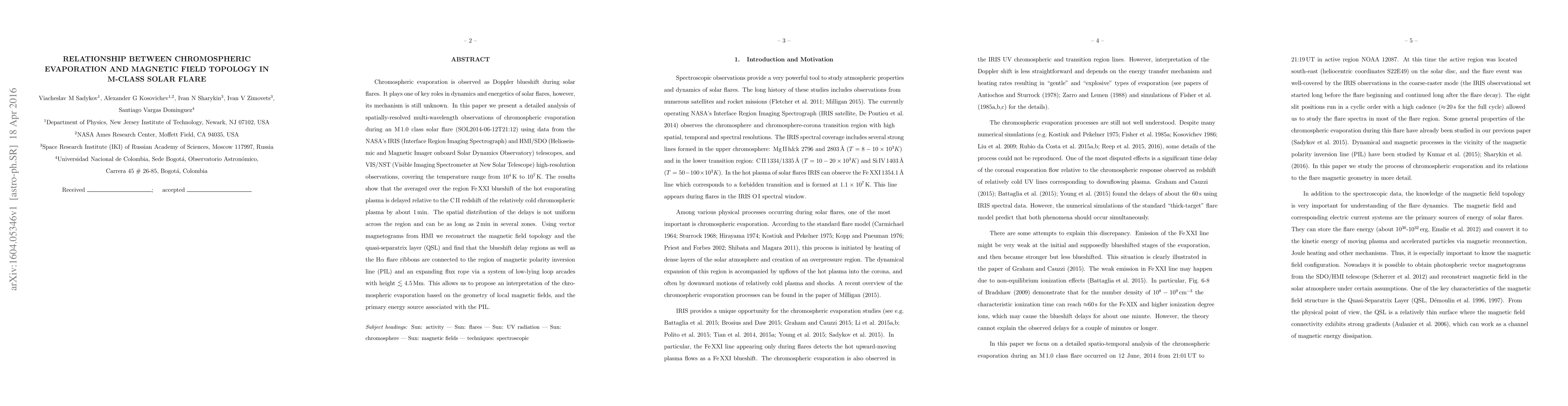 This study investigates chromospheric evaporation during an M-class solar flare using multi-wavelength observations, revealing a 1-minute delay in the blueshift of hot evaporating plasma compared to the redshift of cold chromospheric plasma. The analysis links these delays to specific magnetic field topologies, suggesting that the evaporation mechanism is influenced by the geometry of local magnetic fields and the primary energy source associated with the magnetic polarity inversion line.
