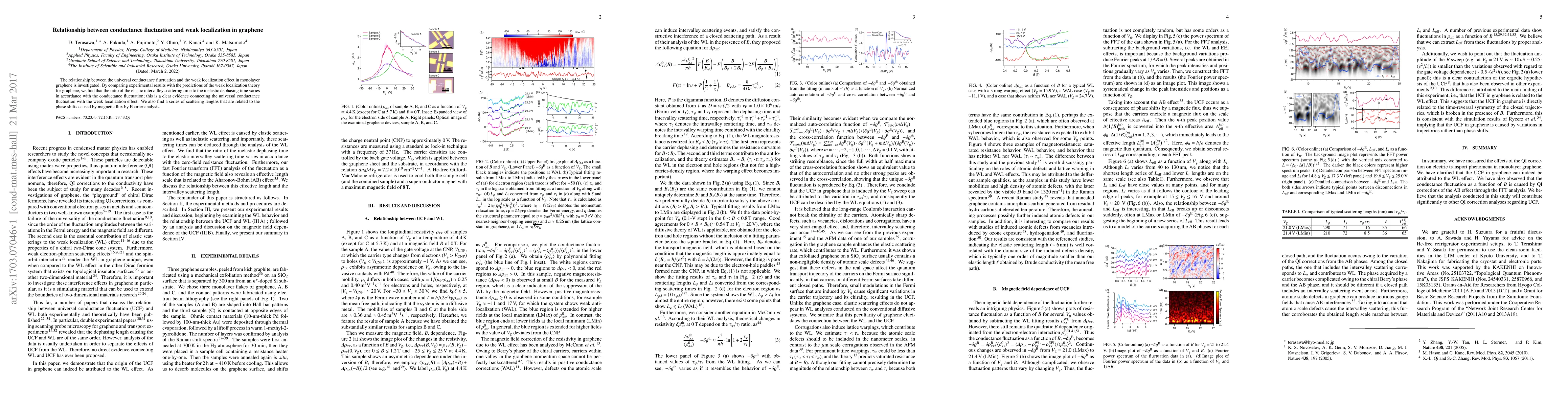 The study investigates the relationship between universal conductance fluctuation (UCF) and weak localization (WL) effect in monolayer graphene through experimental measurements and comparison with theoretical predictions from WL theory for graphene.