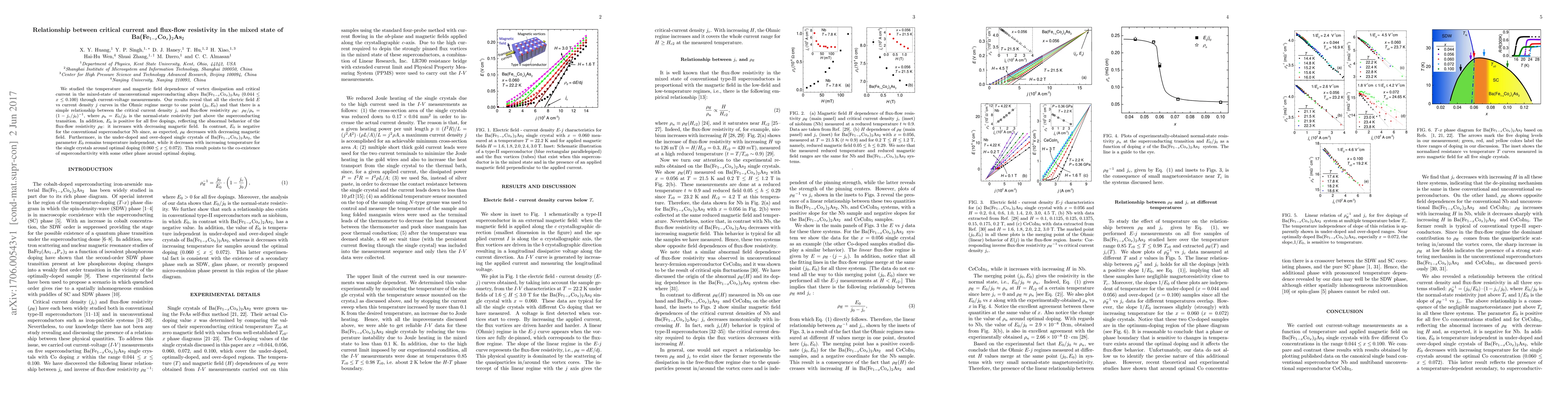 Researchers studied the relationship between critical current and flux-flow resistivity in a type of superconducting alloy, finding that flux-flow resistivity decreases with increasing magnetic field and remains temperature-independent at optimal doping levels.