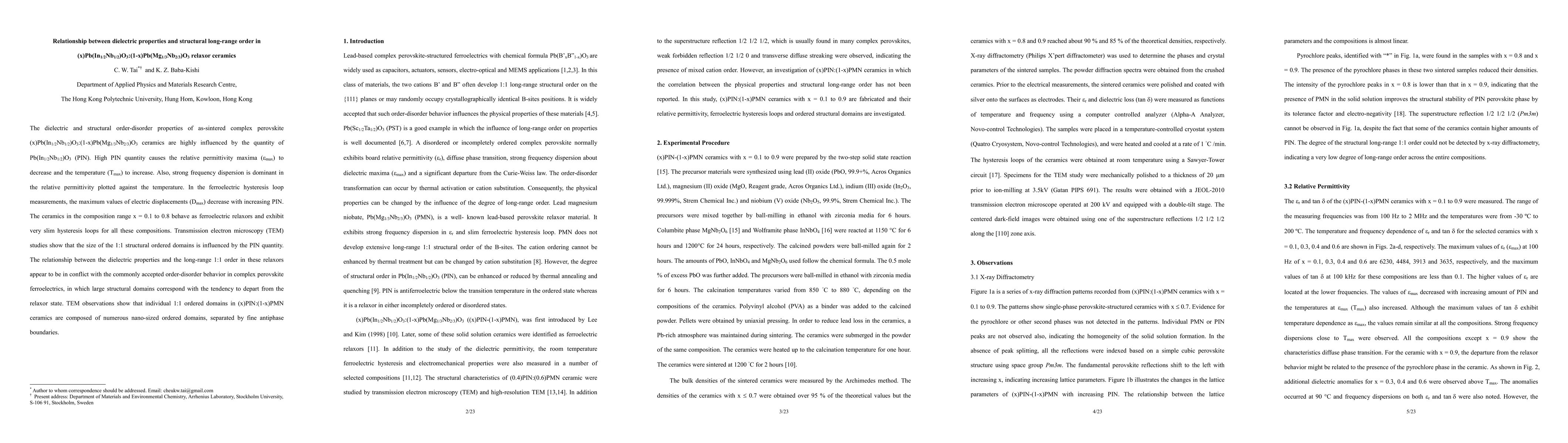 This paper investigates the impact of Pb(In1/2Nb1/2)O3 content on dielectric and structural properties in relaxor ceramics. As PIN increases, relative permittivity maxima decrease and the transition temperature rises, while the size of structural 1:1 ordered domains correlates inversely with dielectric behavior, contradicting typical order-disorder trends in ferroelectrics.