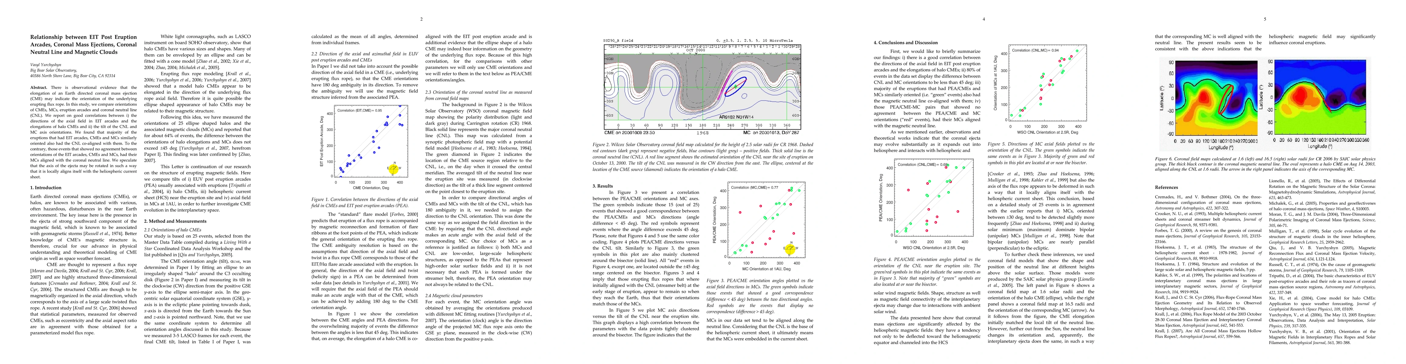 This study finds correlations between the orientations of Earth-directed coronal mass ejections (CMEs), magnetic clouds (MCs), eruption arcades, and the coronal neutral line (CNL). It reports good alignment between CME elongations and axial fields in EIT arcades, and between the tilt of the CNL and MC axes, suggesting that the ejecta may locally align with the heliospheric current sheet.