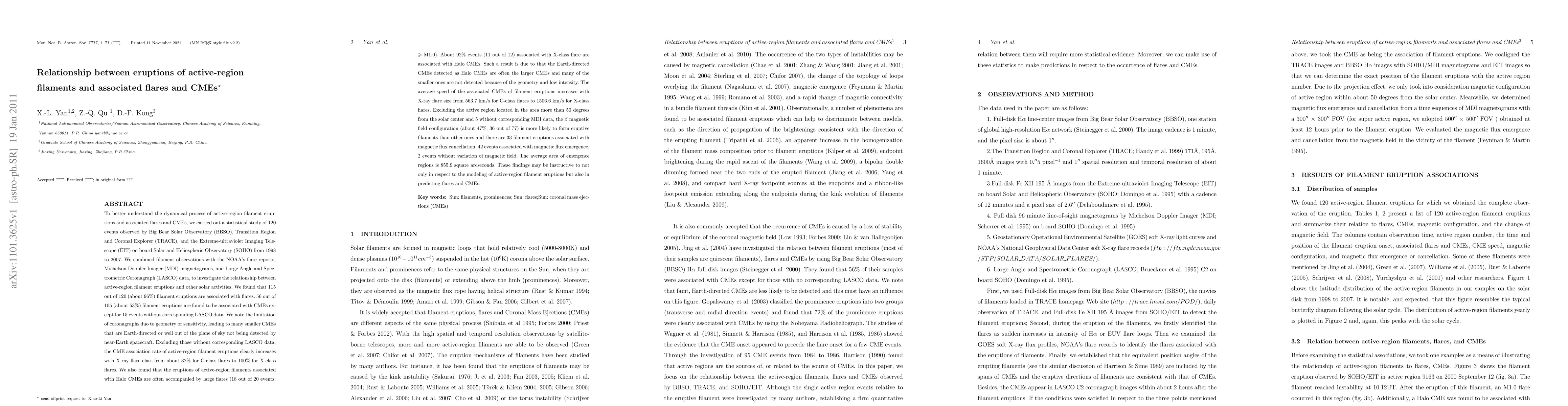 This study statistically analyzes 120 active-region filament eruptions observed from 1998 to 2007, finding that 115 are associated with flares and 56 with CMEs. The association rate of CMEs with filament eruptions increases with flare class, especially for X-class flares, which are often accompanied by Halo CMEs.