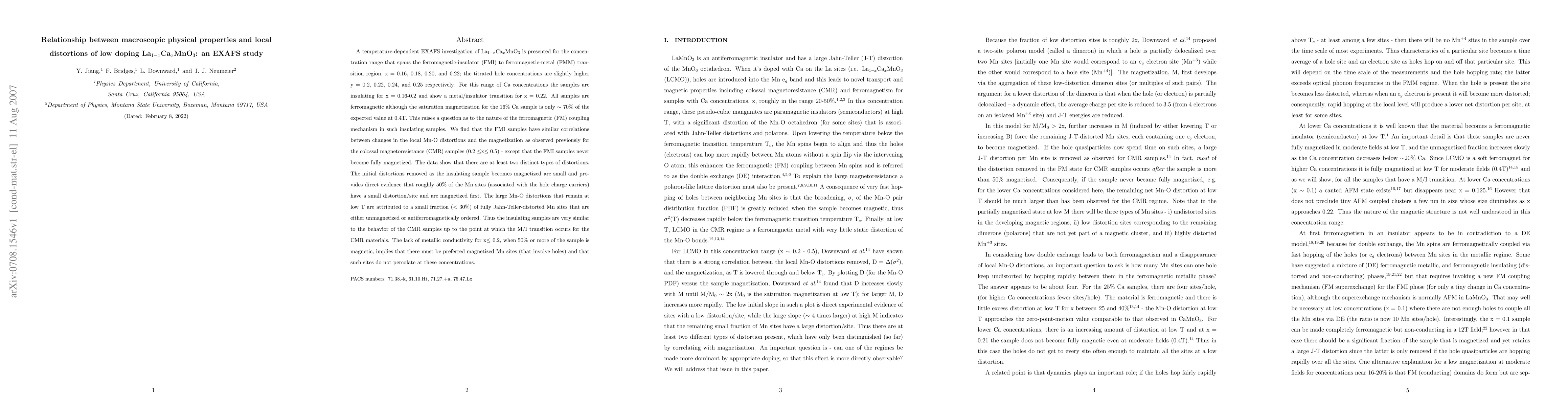 A temperature-dependent EXAFS investigation of La{1-x}Ca{x}MnO3 is presented for the concentration range that spans the ferromagnetic-insulator (FMI) to ferromagnetic-metal (FMM) transition region, x = 0.16-0.22. The samples are insulating for x = 0.16-0.2 and show a metal/insulator transition for x = 0.22. All samples are ferromagnetic although the saturation magnetization for the 16% Ca sample is only ~ 70% of the expected value at 0.4T. We find that the FMI samples have similar correlations between changes in the local Mn-O distortions and the magnetization as observed previously for the colossal magnetoresistance (CMR) samples (0.2 < x < 0.5) - except that the FMI samples never become fully magnetized. The data show that there are at least two distinct types of distortions. The initial distortions removed as the insulating sample becomes magnetized are small and provides direct evidence that roughly 50% of the Mn sites have a small distortion/site and are magnetized first. The large remaining Mn-O distortions at low T are attributed to a small fraction of Jahn-Teller-distorted Mn sites that are either antiferromagnetically ordered or unmagnetized. Thus the insulating samples are very similar to the behavior of the CMR samples up to the point at which the M/I transition occurs for the CMR materials. The lack of metallic conductivity for x <= 0.2, when 50% or more of the sample is magnetic, implies that there must be preferred magnetized Mn sites and that such sites do not percolate at these concentrations.