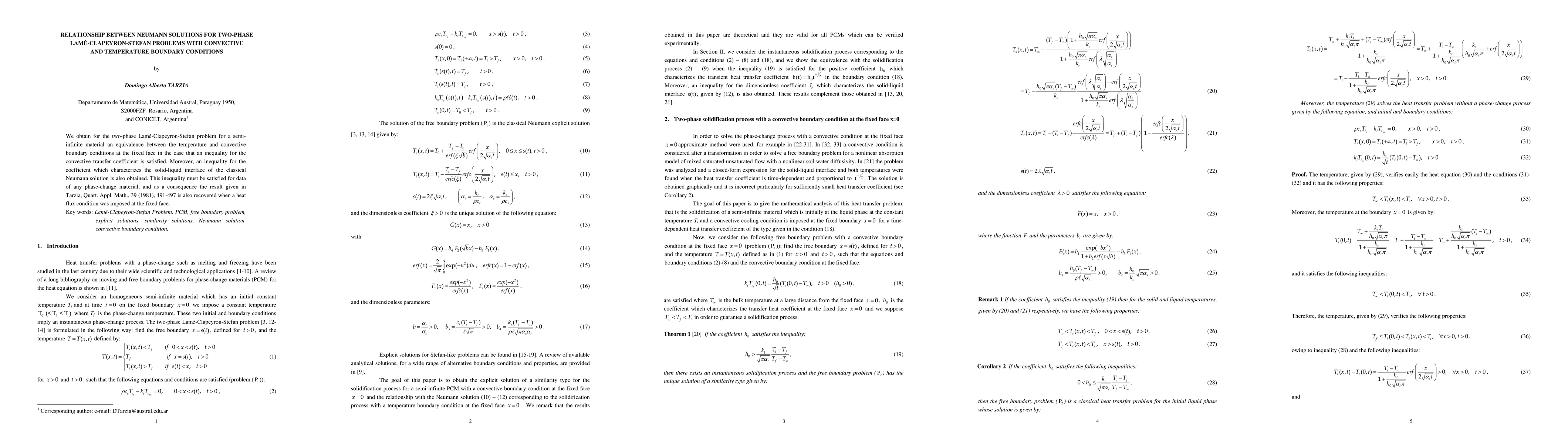 This paper establishes an equivalence between temperature and convective boundary conditions for a two-phase Lame-Clapeyron-Stefan problem in semi-infinite materials, provided a certain inequality for the convective transfer coefficient is met. Additionally, it derives an inequality for the coefficient characterizing the solid-liquid interface in the classical Neumann solution.