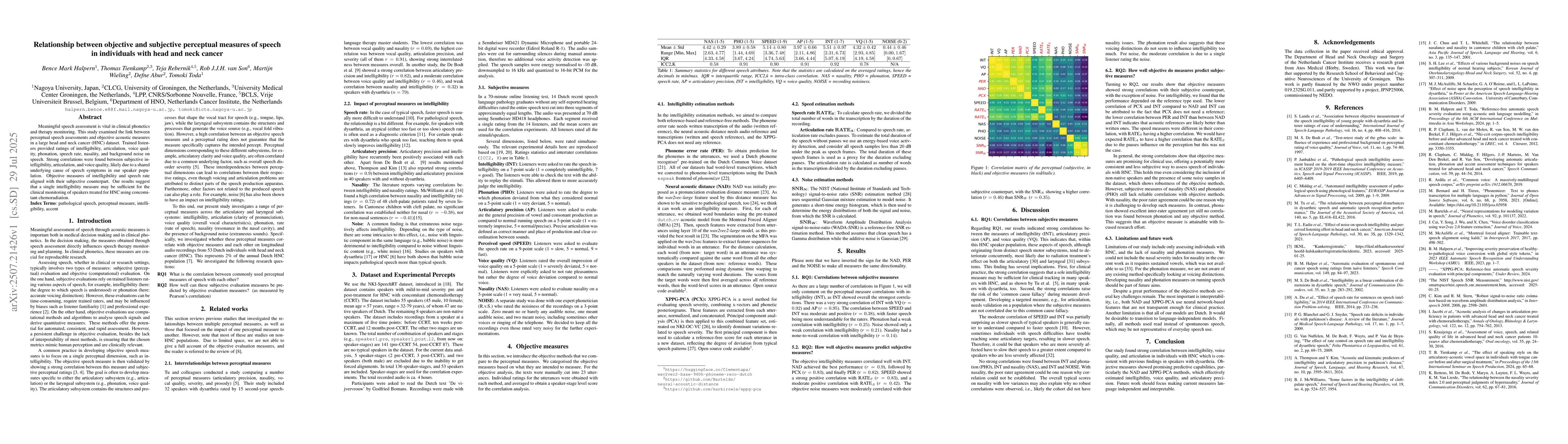 This work stands out by demonstrating strong correlations between subjective and objective speech measures in HNC speakers, suggesting potential for more efficient clinical monitoring using objective measures alone.