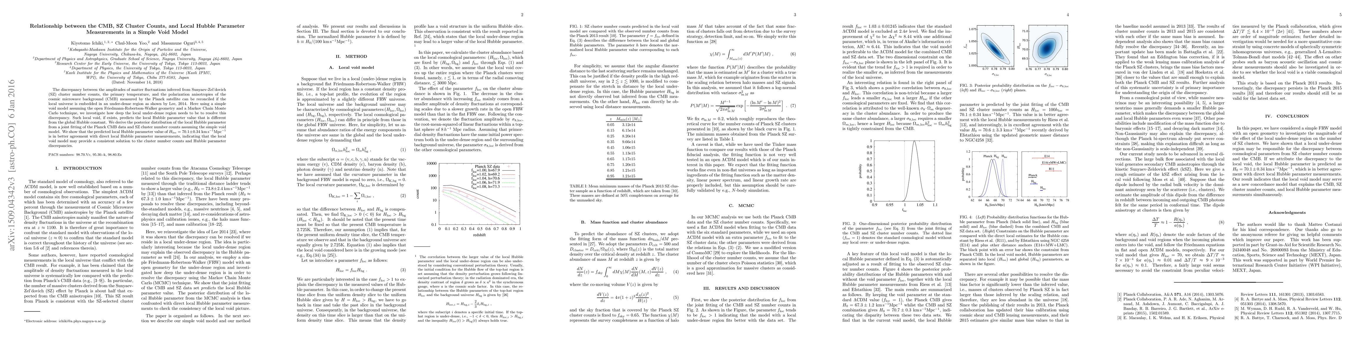 This paper explores how a simple void model can reconcile discrepancies between CMB and SZ cluster count data, proposing that the local universe resides in an under-dense region. The study finds a local Hubble parameter value of $H_{\rm loc}=70.1\pm0.34~{\rm km\,s^{-1}Mpc^{-1}}$, which aligns better with local measurements than the global Hubble constant.