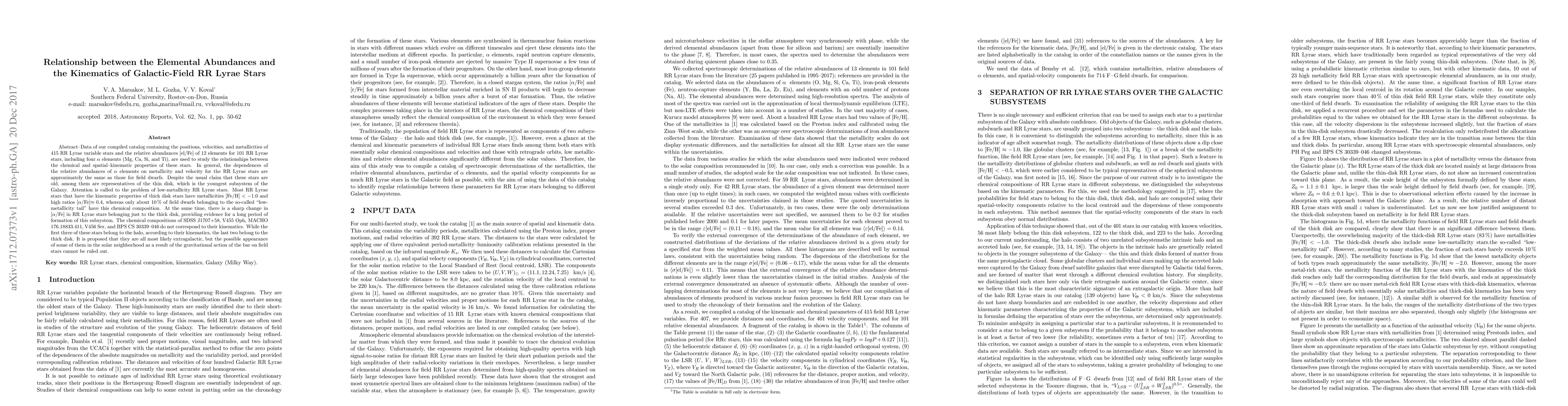 This paper investigates the relationship between elemental abundances and kinematics in 415 RR Lyrae stars, finding that their $\alpha$-element abundances correlate with metallicity and velocity similarly to field dwarfs. It highlights the presence of young thin-disk RR Lyrae stars and notes discrepancies in the chemical compositions of some stars, suggesting extragalactic origins or gravitational influences.