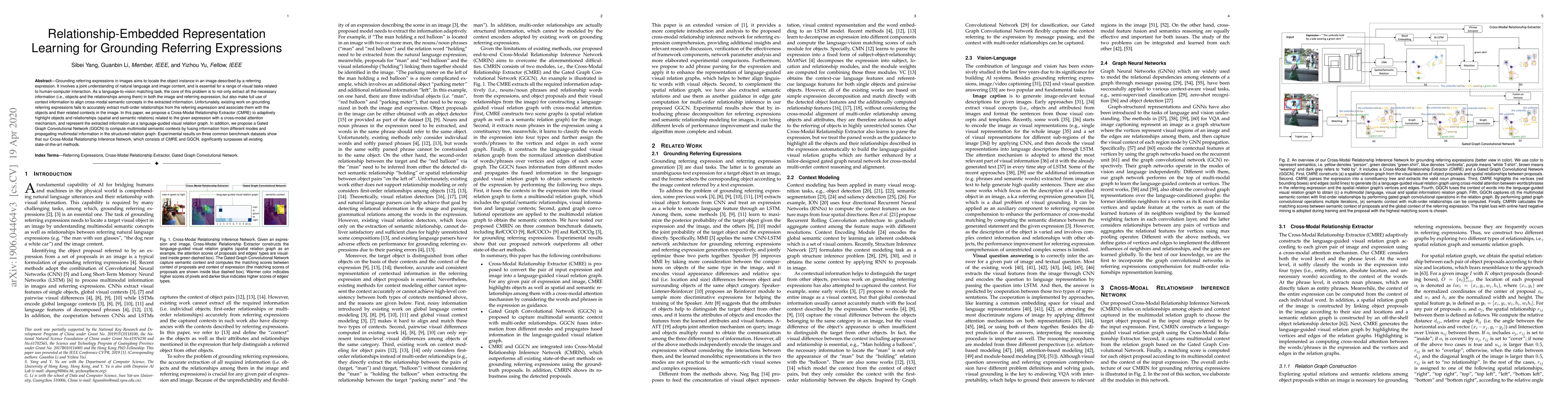 This paper proposes a Cross-Modal Relationship Extractor (CMRE) and a Gated Graph Convolutional Network (GGCN) to improve grounding referring expressions in images by better extracting multi-order relationships and context information. The CMRE highlights relevant objects and relationships, while the GGCN computes multimodal semantic contexts, leading to superior performance on benchmark datasets.