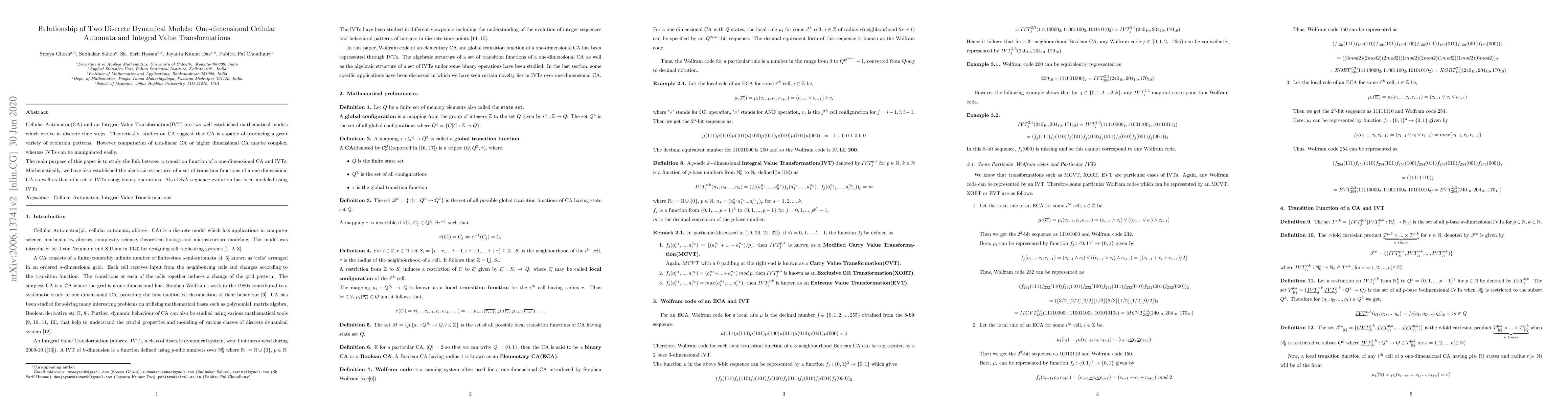 This paper investigates the relationship between one-dimensional Cellular Automata (CA) and Integral Value Transformations (IVTs), exploring the algebraic structures of their transition functions. It highlights the computational complexity of CA versus the ease of manipulating IVTs, and models DNA sequence evolution using IVTs.