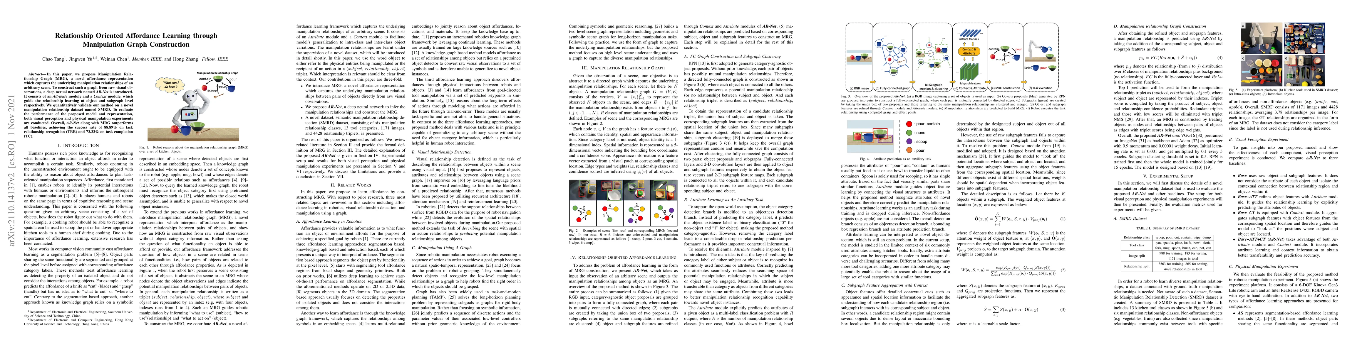 This paper introduces the Manipulation Relationship Graph (MRG) and AR-Net, a deep neural network with Attribute and Context modules, to learn and represent manipulation relationships in a scene. The proposed model achieves high success rates in task relationship recognition and task completion, outperforming baselines.